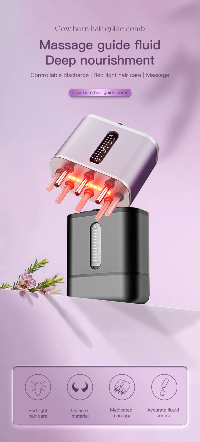 HornGlow Red Light Scalp Therapy Comb: Portable Growth & Oil Dispenser