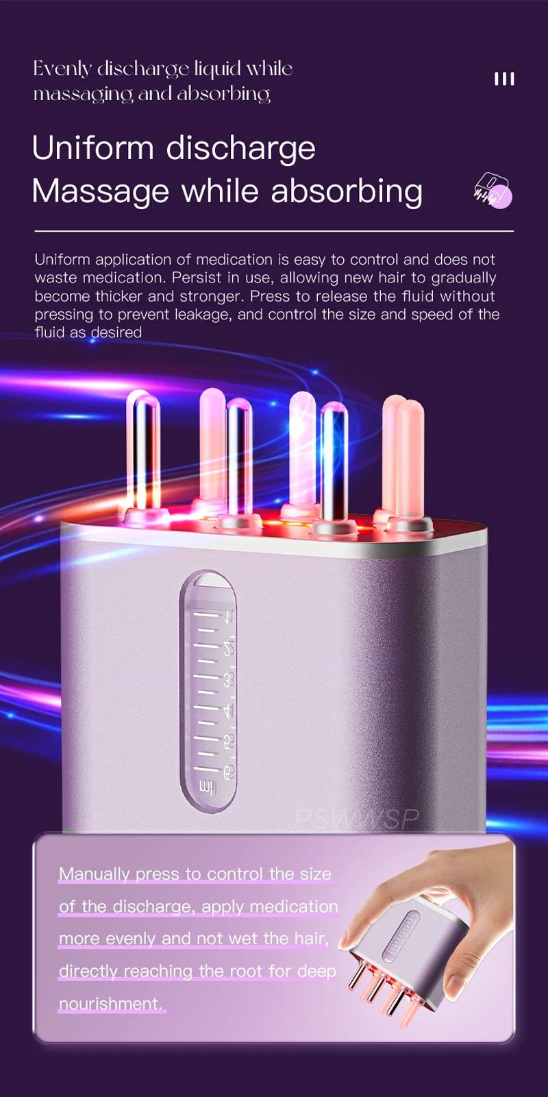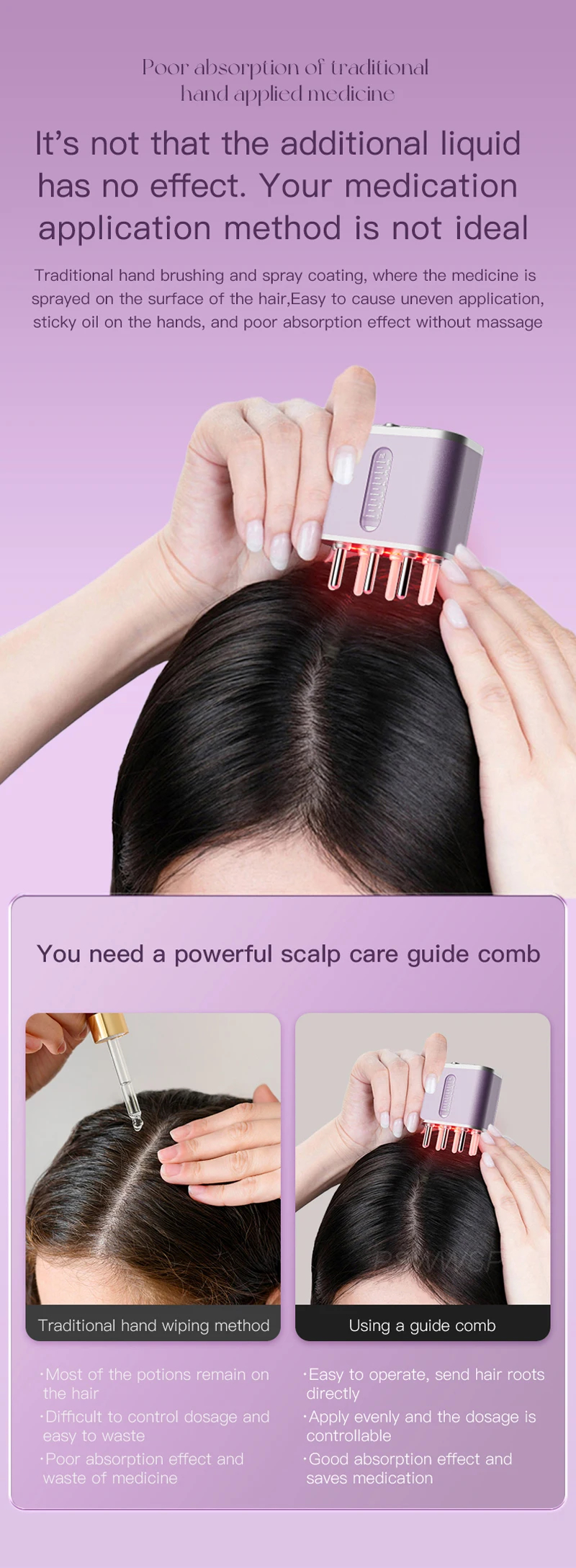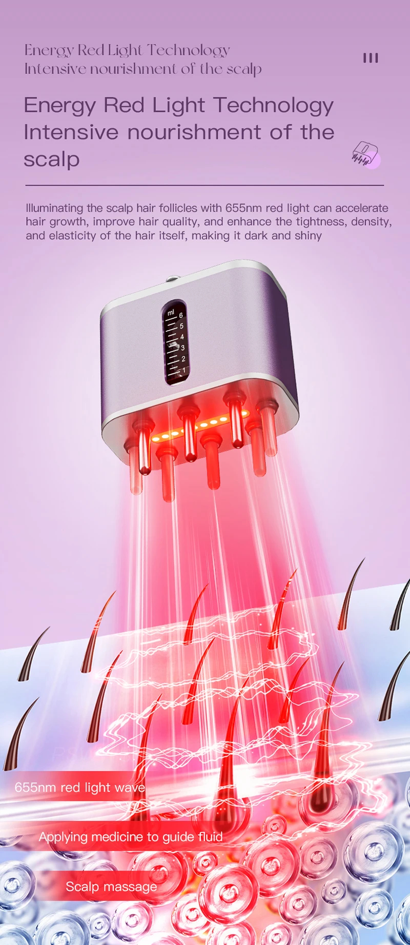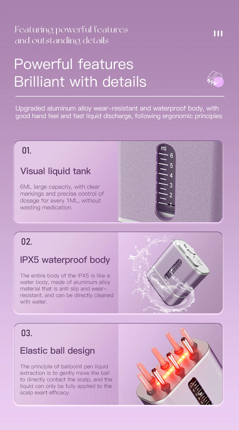 1. Micro-current + high-frequency vibration massage deeply soothes the scalp, promotes blood circulation, allows the nutrient solution to reach the hair roots, and better promotes the absorption of nutrients by the scalp.