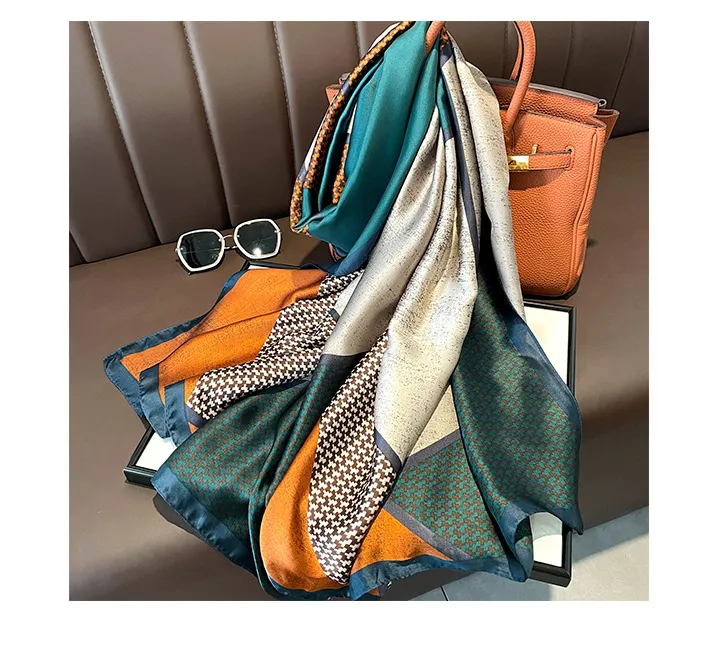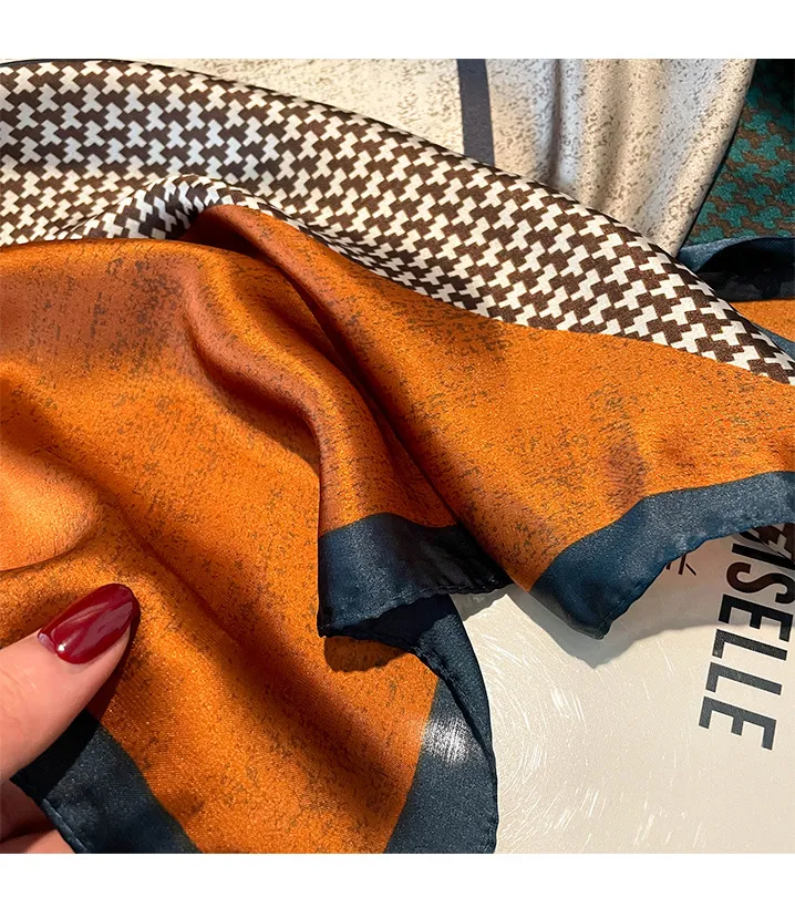 Houndstooth Color Matching New Silk Satin Scarf – Elegant and Timeless Accessory
