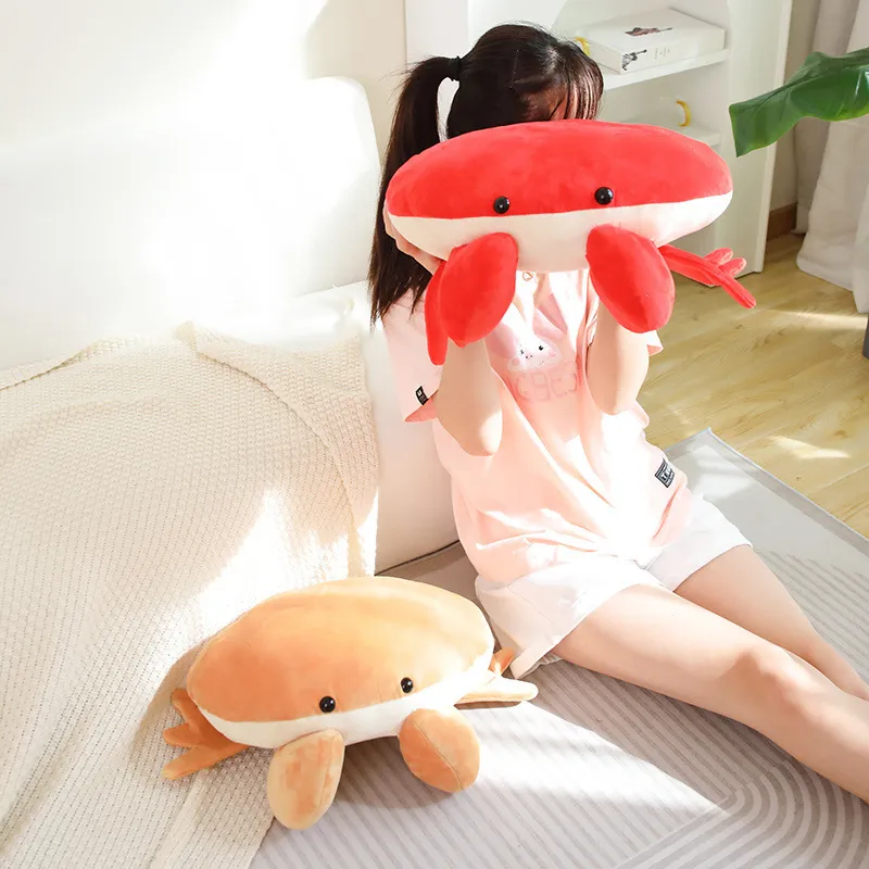 In addition to its decorative appeal, the plush toy offers comfort and relaxation. Whether you're lounging on the couch, taking a nap, or simply want something soft to hold, this plush crab provides a cozy experience. Its soft fabric and huggable design make it perfect for relaxing moments, offering both emotional and physical comfort.