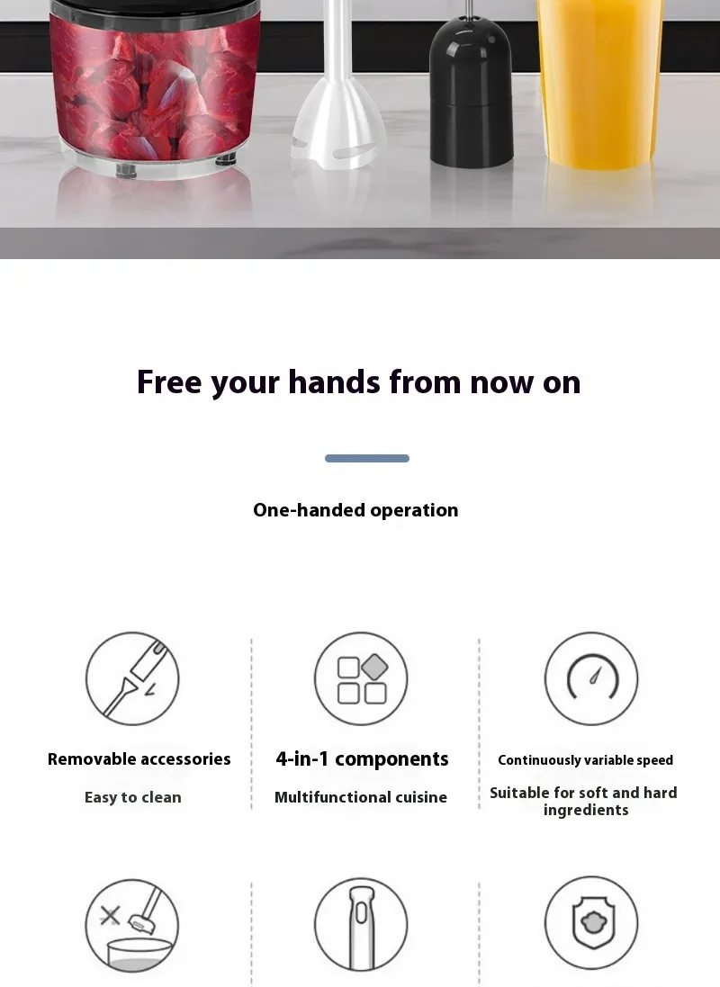 Durable and Safe: Made with high-quality, durable materials, the Household Hand Blender is built to last