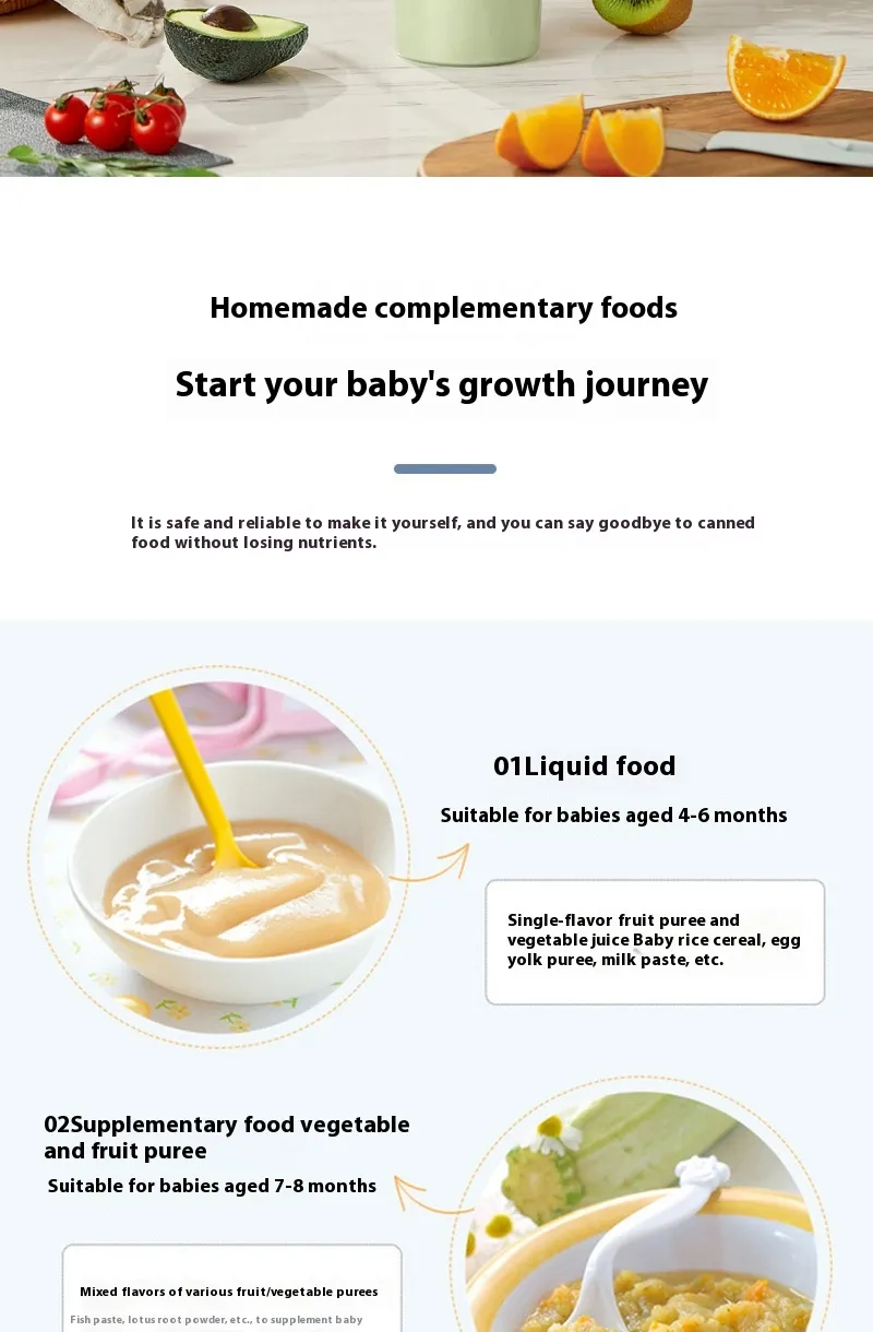 - Baby Food: Puree fruits, vegetables, and meats to create healthy, homemade baby food for your little one.