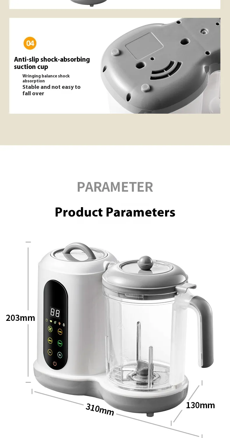 Multi-Function Design: The Baby Food Mixer combines several functions in one appliance. It steams, blends,