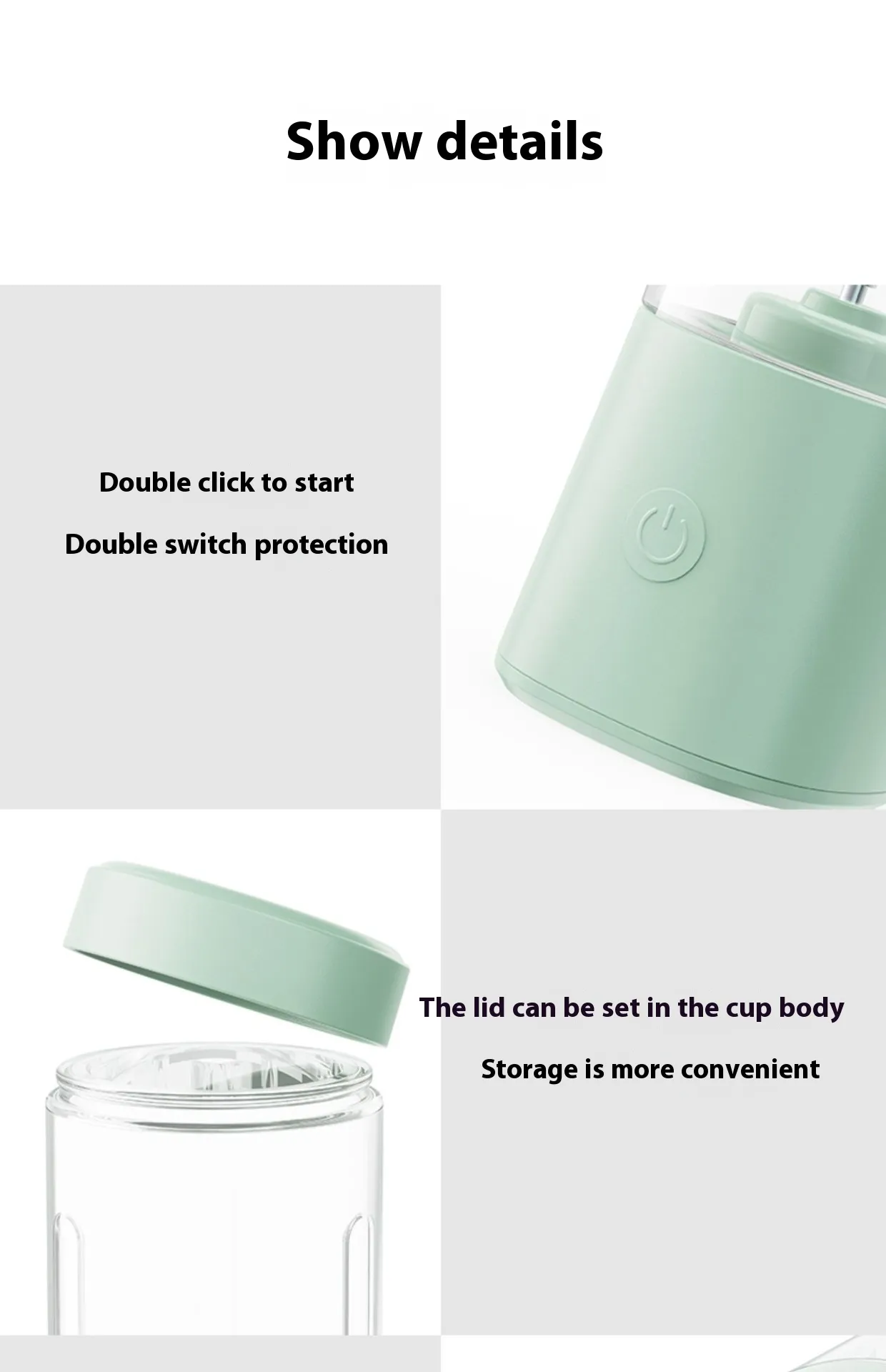 allows you to make fresh juices and smoothies on the go. Its compact size and rechargeable battery make it ideal for use at home, work, or