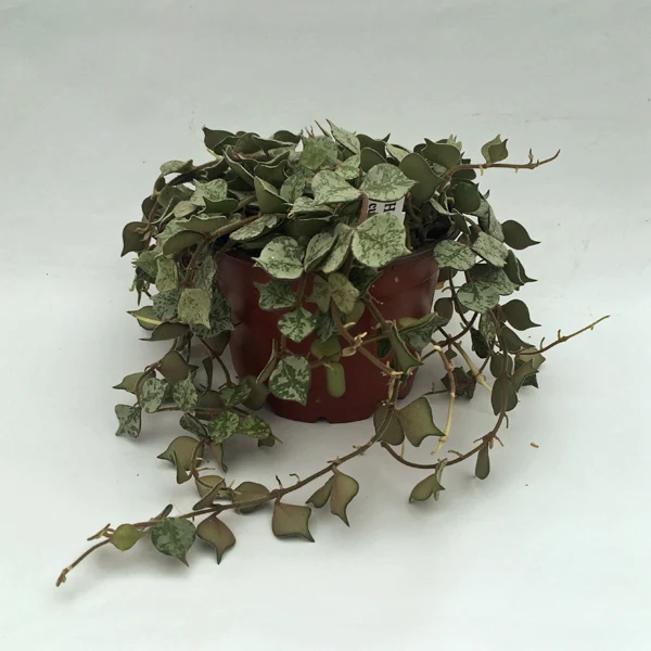Characterized by its small, spade-shaped leaves, the Hoya curtisii boasts a striking appearance. The leaves are adorned with a mosaic of silver and green, creating a beautiful, almost surreal texture that catches the eye. This variegation adds a dazzling contrast against the plant's dark green base color, making it a prized specimen for plant enthusiasts and collectors.