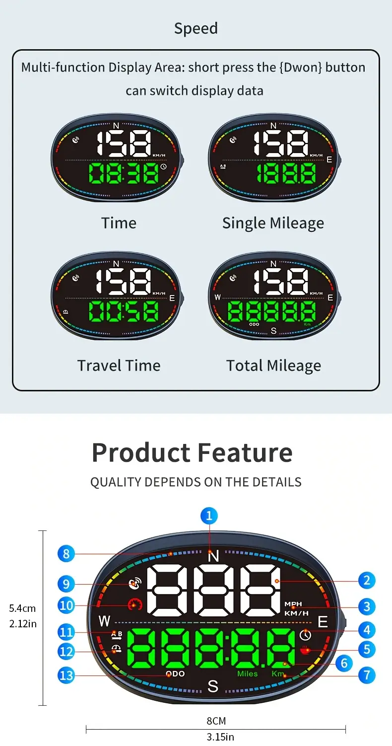 HUD Speedometer with Compass & Overspeed Alarm