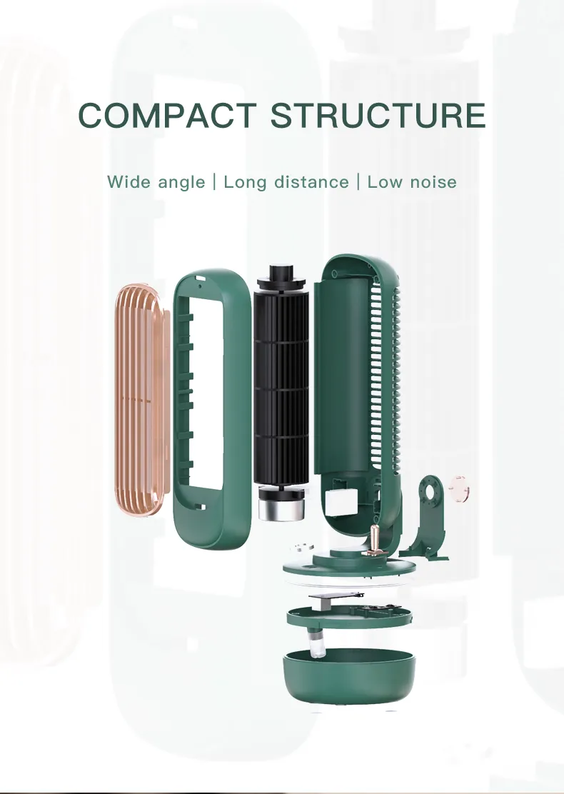 1.This portable bladeless tower fan with spray humidification is not only a desktop spray mist fan but also a home decoration. It features a