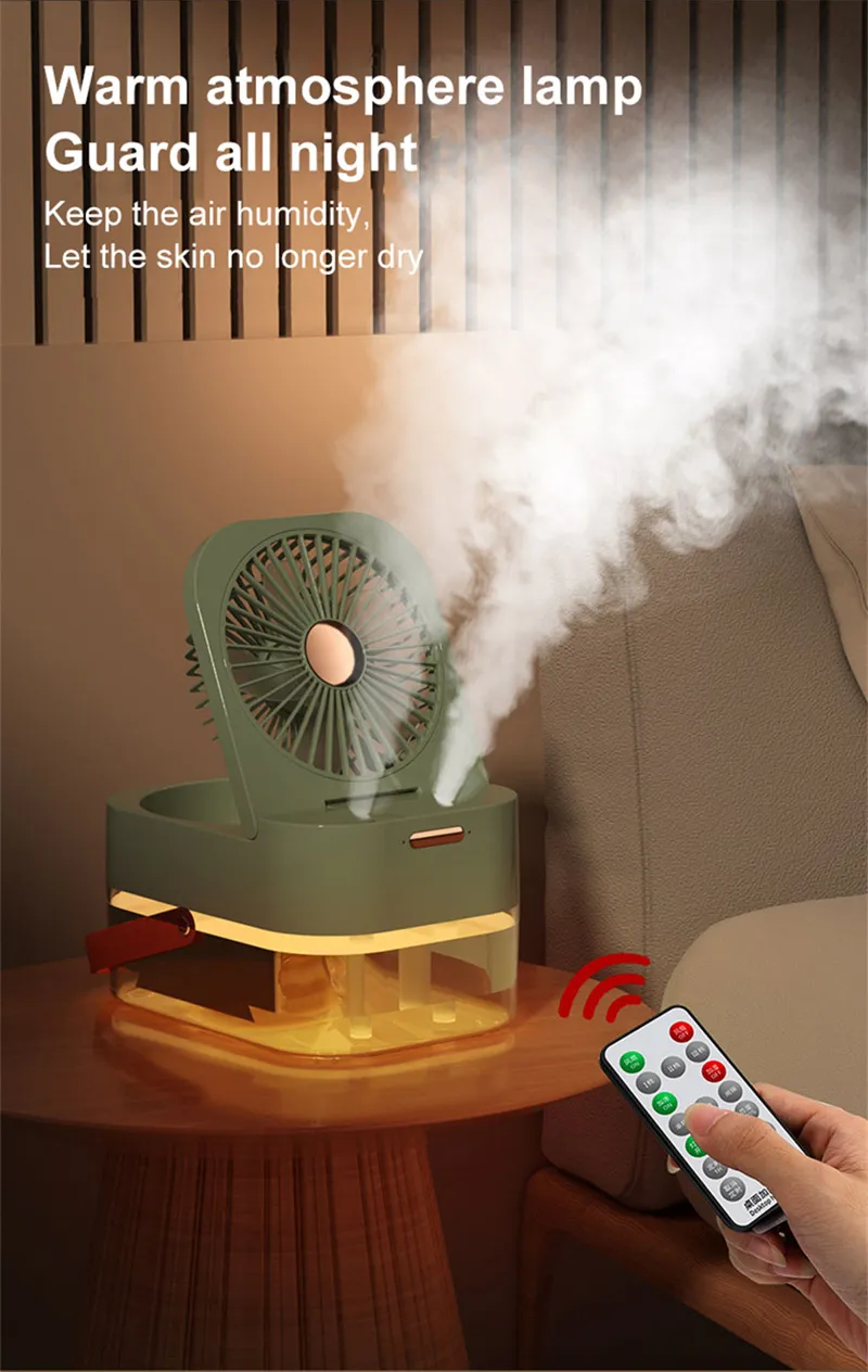 Stay cool and refreshed this summer with the Humidifier Spray Fan, a versatile and portable solution that combines a fan, air cooler, air humidifier, and night light in one compact device. Perfect for use at home, in the office, or while traveling, this USB-powered mist fan delivers a gentle spray of moisture along with a cool breeze, helping to combat dry air and keep you comfortable in warm weather.