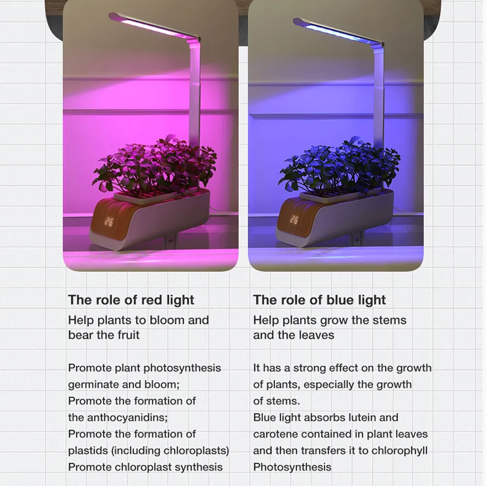 1. Click on the growth lamp and turn on the red light once. Click on it for the second time to turn on the blue light. Click on it for the