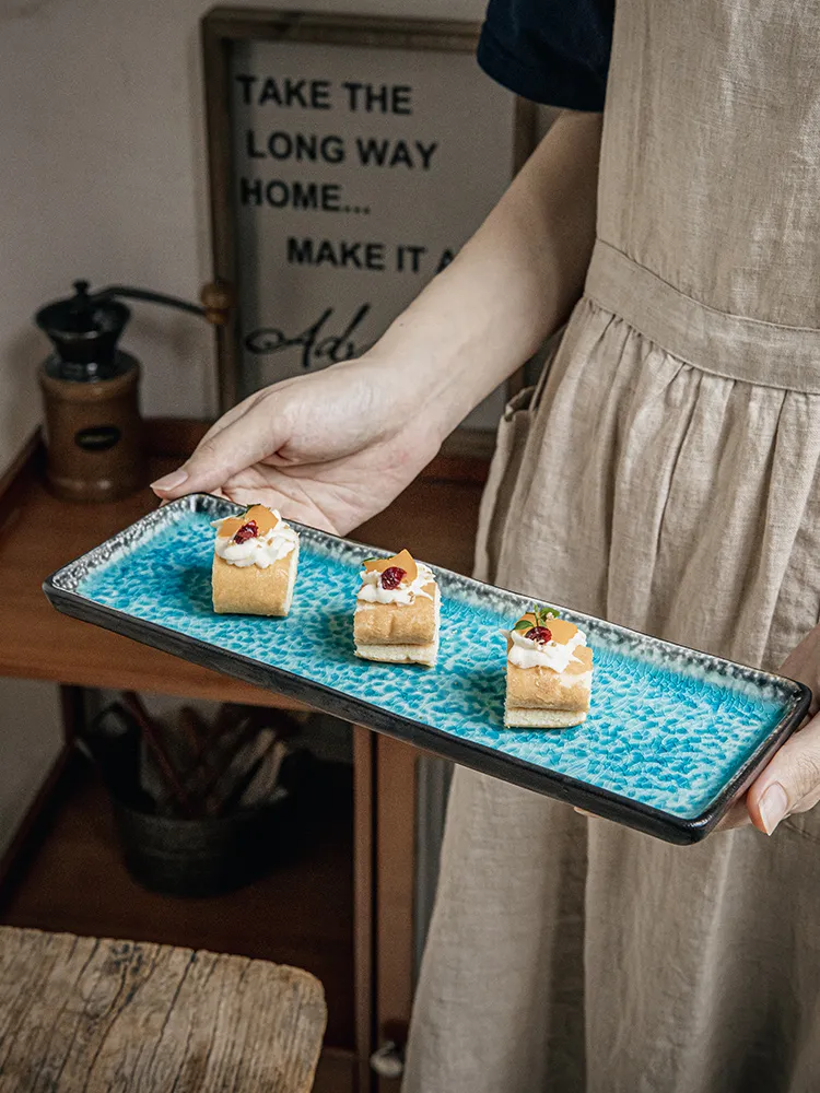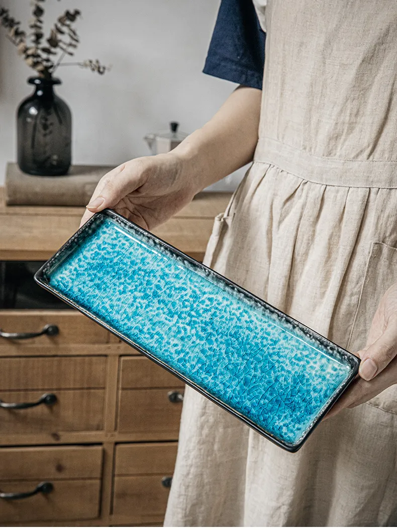 Color classification: Beihe Blue-11.5 inches crackle glaze rectangular plate, Beihe black-11.5 inches crackle glaze rectangular plate