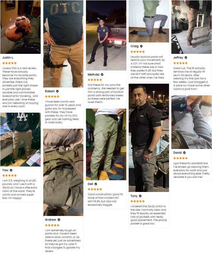 Melinda: ⭐⭐⭐⭐⭐ I purchased these for my son's fire academy training. He required tactical pants with reinforced knees, and these fit the bill perfectly. He's thrilled with them.