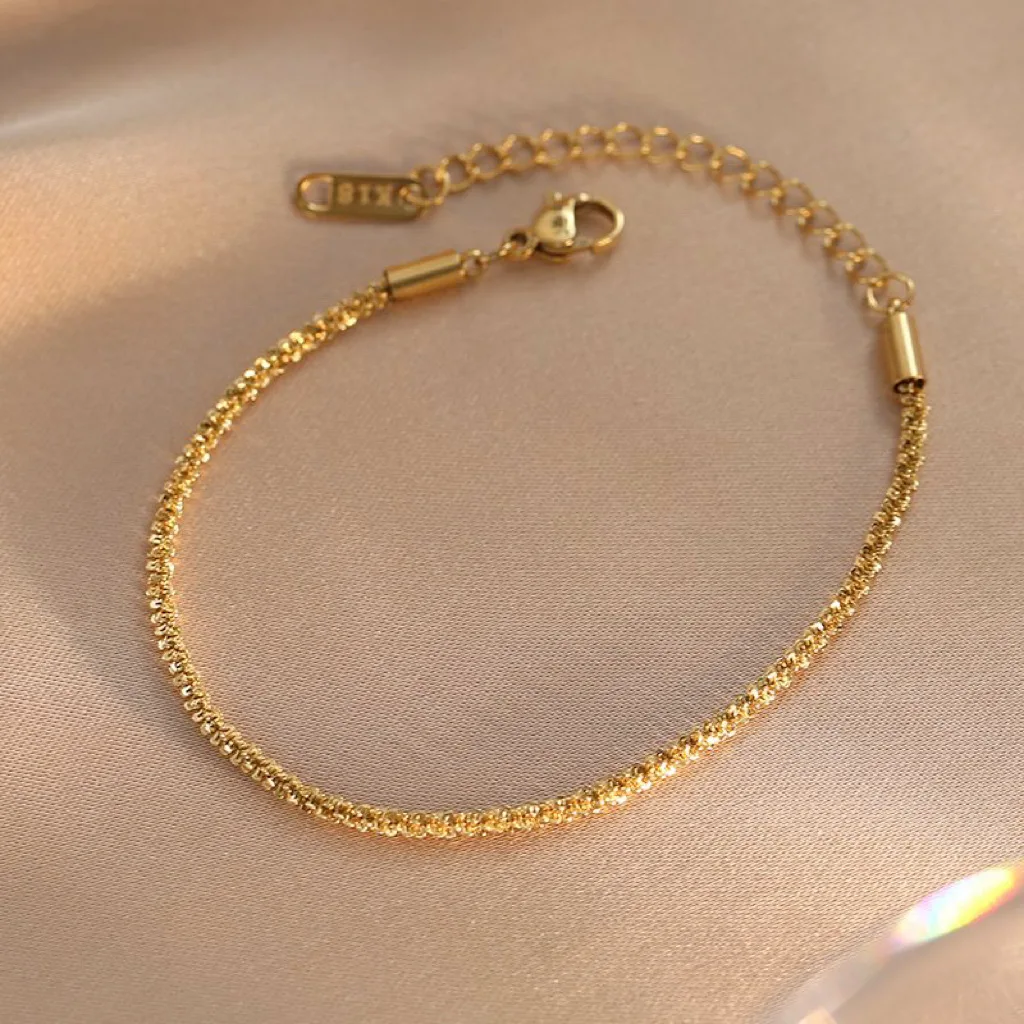 The Ins Female Stainless Steel Bracelet is the perfect combination of elegance, durability, and versatility. Its minimalist design, gold