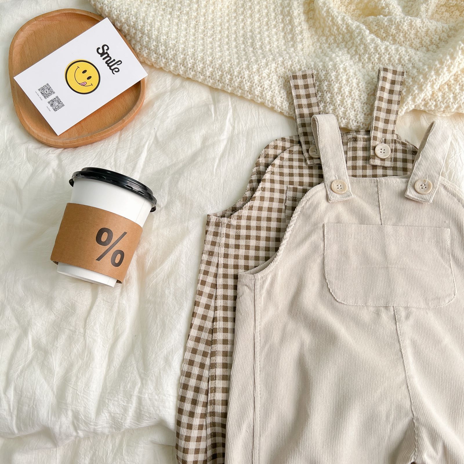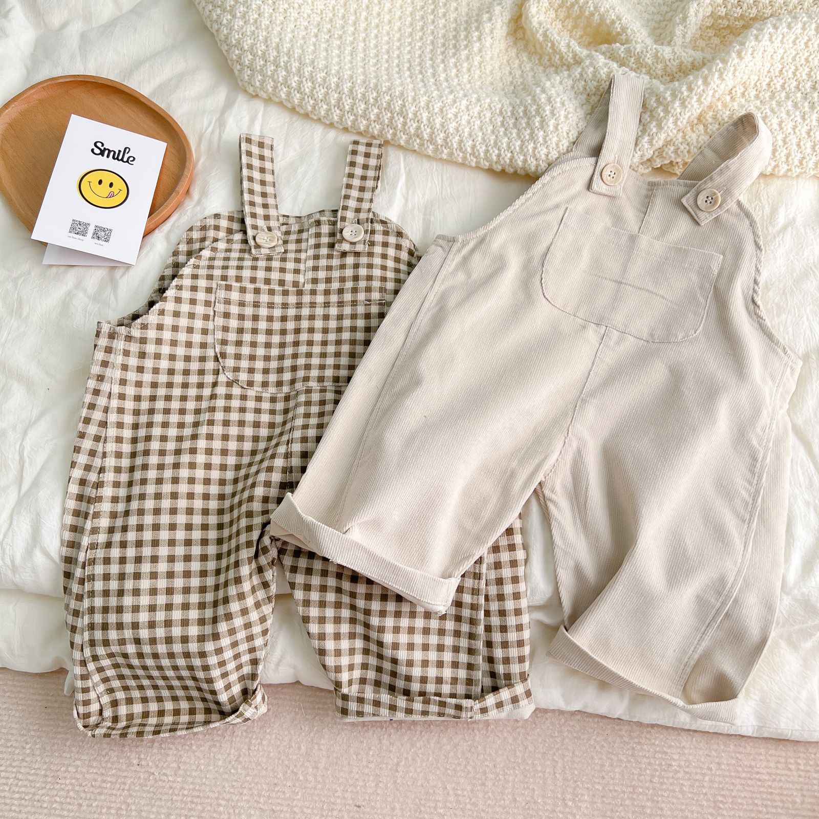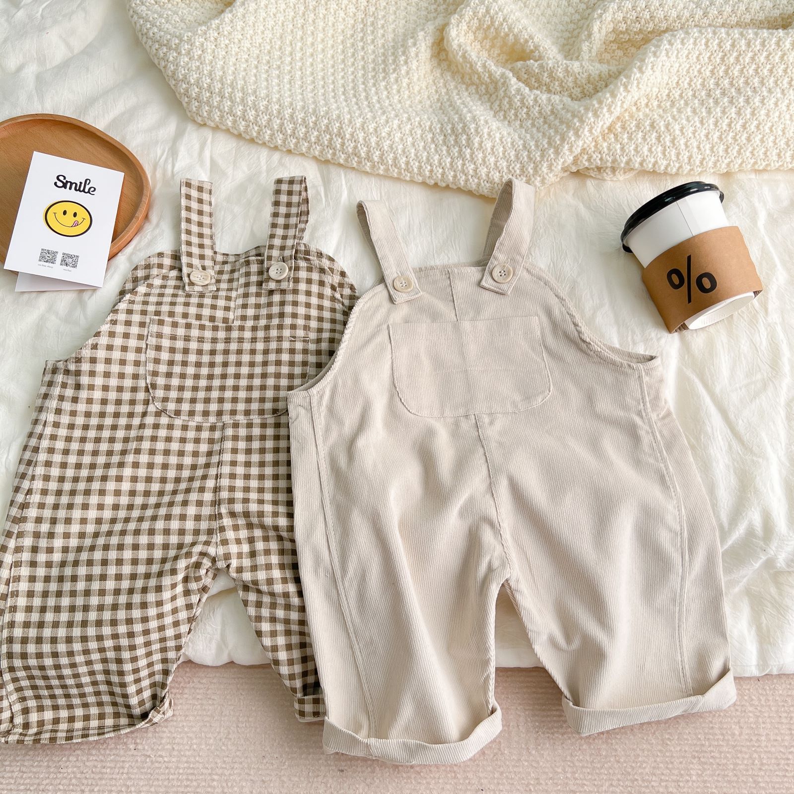 INS Pop Spring and Autumn Infant Simple Plaid Corduroy Overalls – Cozy and Stylish for Your Little One