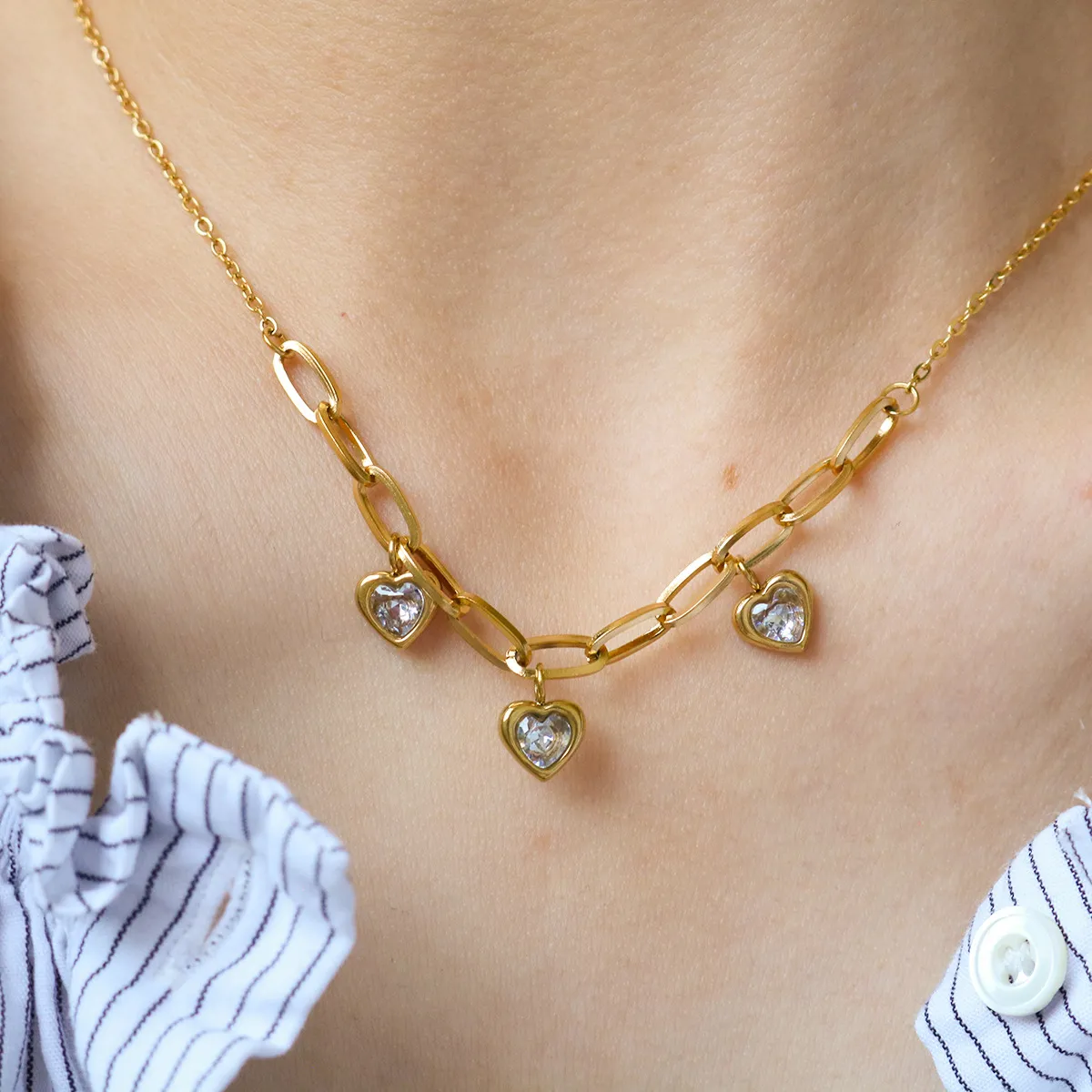 Crafted from high-quality stainless steel, this necklace is designed for long-lasting wear and resilience. The addition of titanium steel makes the piece stronger, lightweight, and resistant to tarnishing, ensuring it retains its beauty over time. The 18K gold plating adds a layer of elegance, enhancing the necklace's overall luxury feel while maintaining its durability.