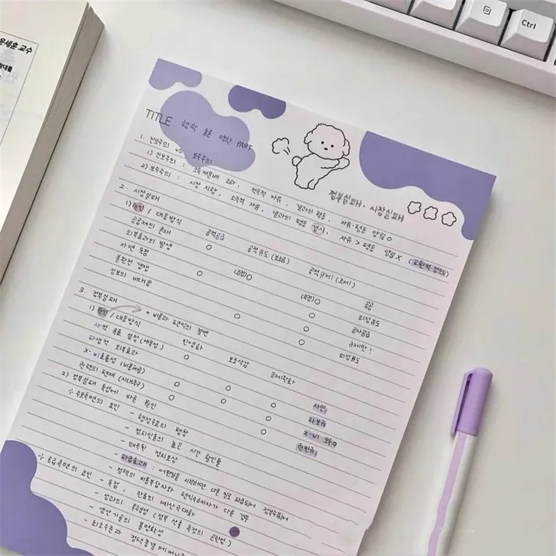 The INS Wind Marshmallow Dog Korean PP Puppy B5 Word Sticky Note Paper combines adorable design with functionality to make note-taking and organizing both fun and practical. Featuring cute marshmallow dog illustrations and high-quality PP (Polypropylene) paper, these B5-sized sticky notes are perfect for jotting down reminders, to-do lists, or creative notes in a stylish way. The adorable puppy theme adds a playful touch to your desk or workspace, while the durable, smooth paper ensures that your writing stays clear and legible. Whether you're a student, professional, or just a stationery enthusiast, these sticky notes make the perfect addition to your collection.