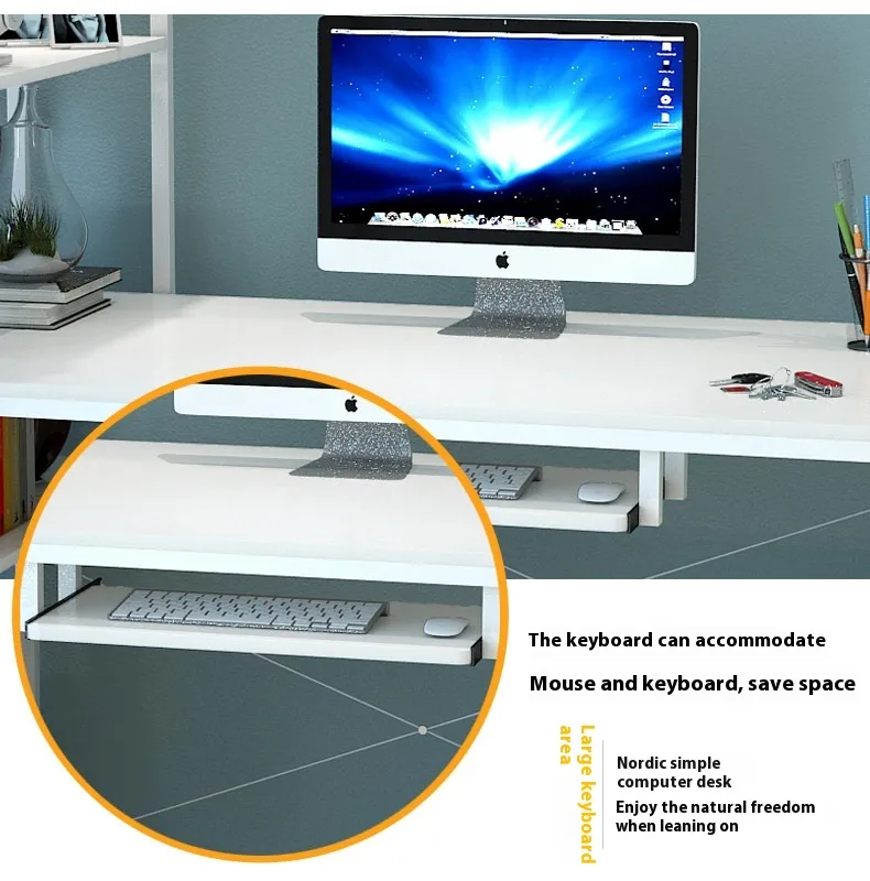 These desks typically feature dedicated areas for placing a monitor and keyboard. Some desks have adjustable stands for the monitor to ensure that your screen is at eye level, which can help reduce neck and eye strain. The keyboard area is often designed to allow for comfortable typing and may include pull-out trays for the keyboard and mouse.