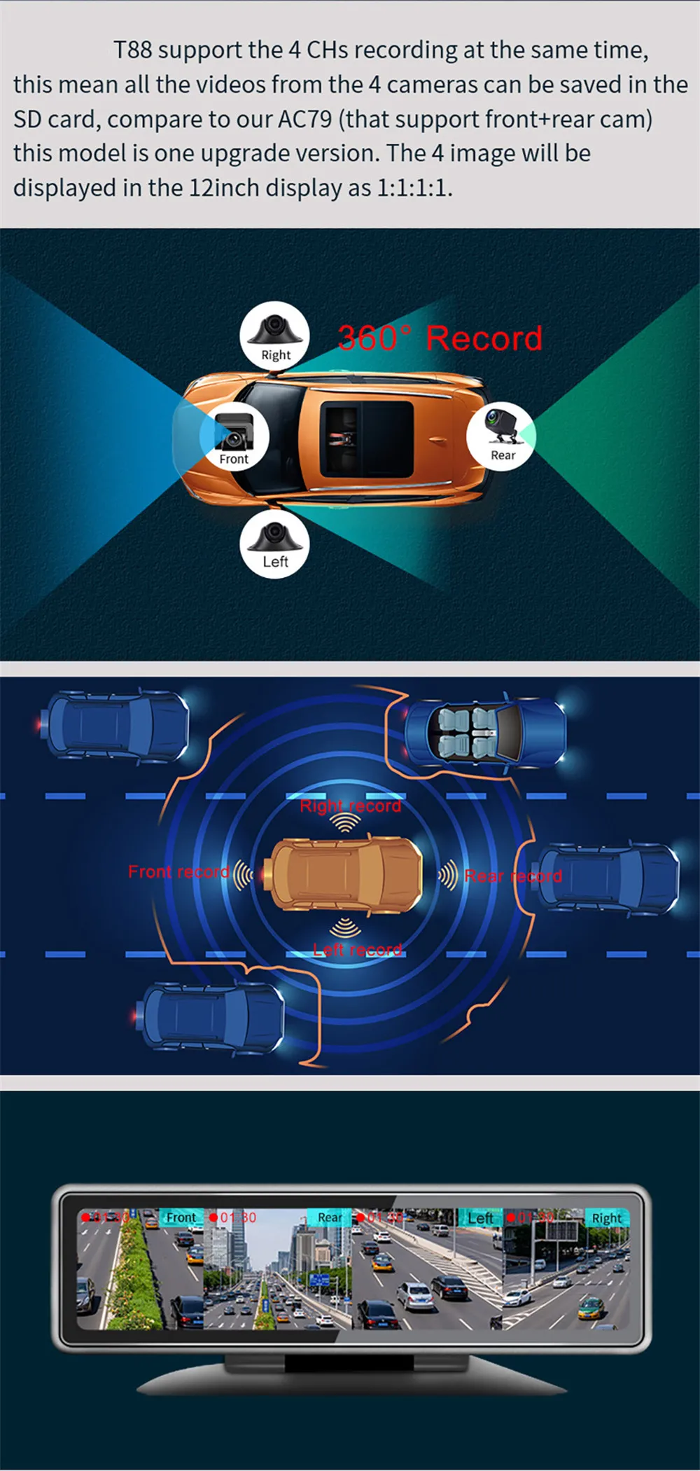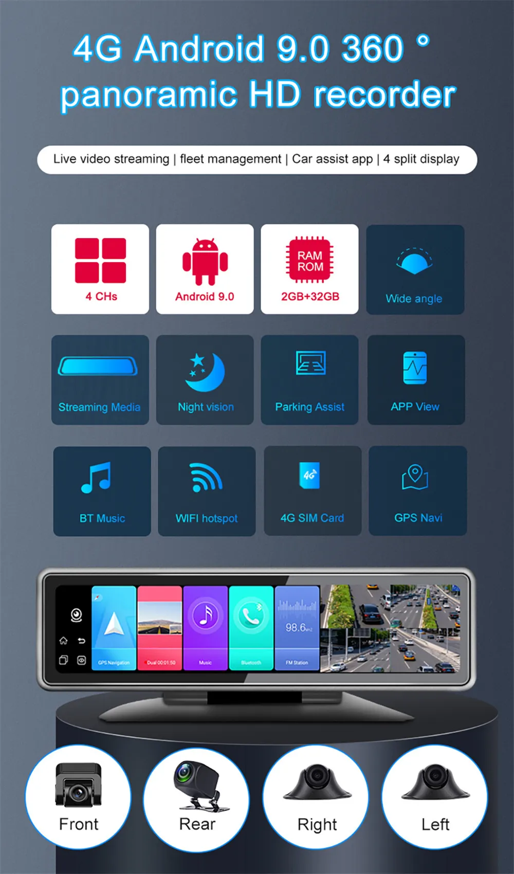 Intelligent 4G360 Panoramic Positioning Tracking Management 24V Remote Monitoring Driving Recorder