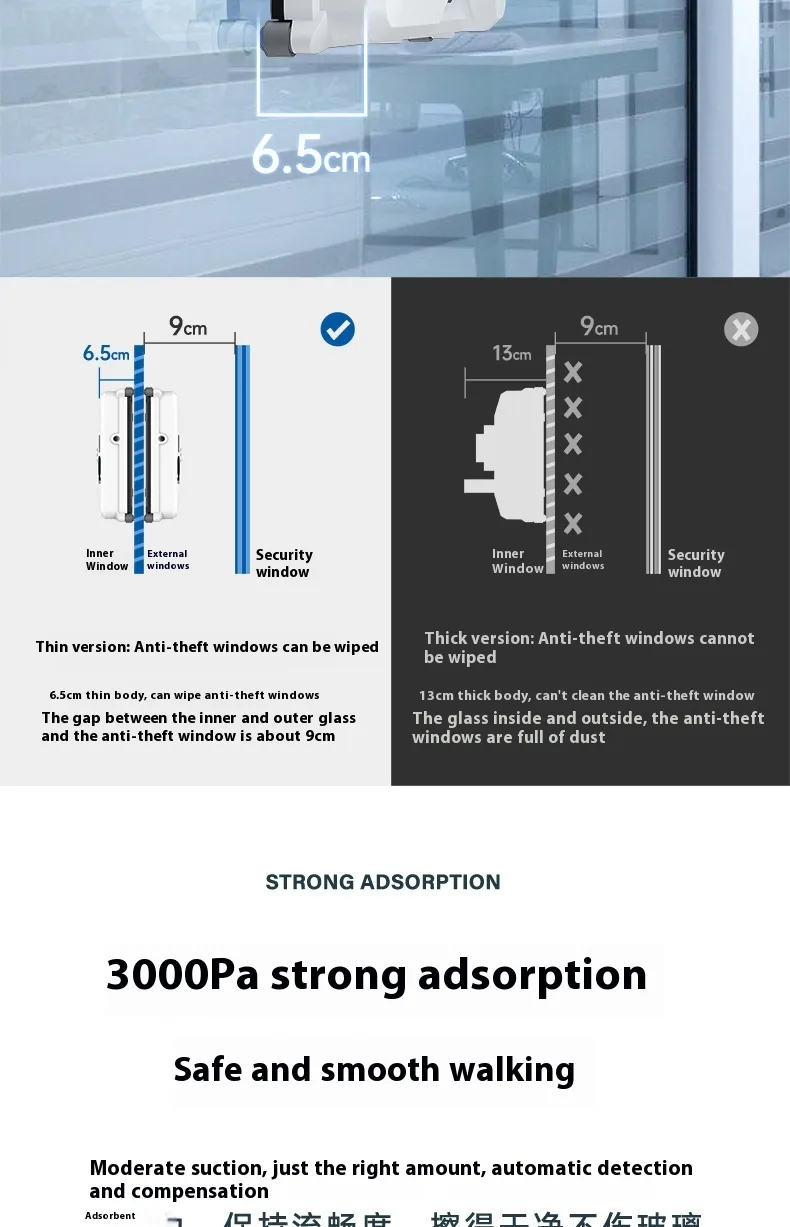Thorough Cleaning: The intelligent navigation and multiple cleaning modes ensure that your windows are cleaned thoroughly,