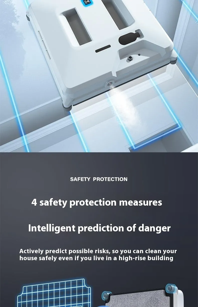 - Anti-Fall Safety System: Ensures the robot stays safe and secure, even on high or slippery windows.