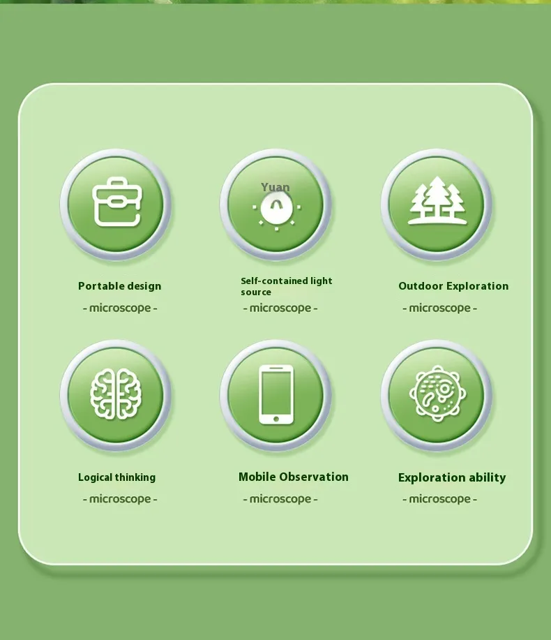 The Internet Celebrity Portable Microscope Children’s Mini Scientific Experiment Outdoor Exploration toy is a wonderful tool to introduce children to the exciting world of science. Its compact size, high magnification, and ease of use make it ideal for young explorers, encouraging them to engage in outdoor activities and scientific observation. Whether for educational play or simply to satisfy their curiosity, this portable microscope is sure to inspire future scientists and naturalists.