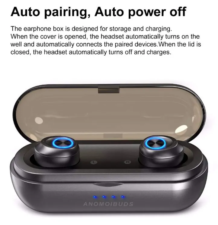 1. Tear off the protective film on new earbuds, put earbuds into charging case( close the lid of case and then