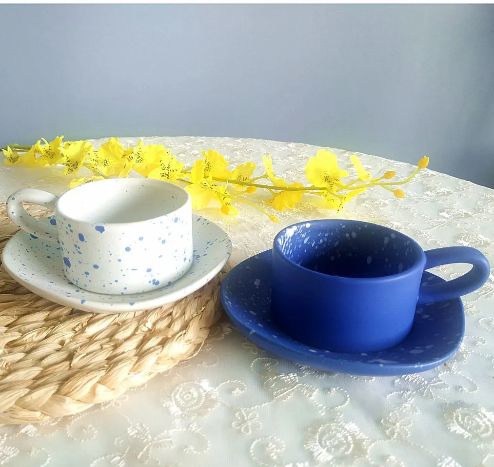 Irregular Spray Point Mugs And Saucers Starry Blue Style