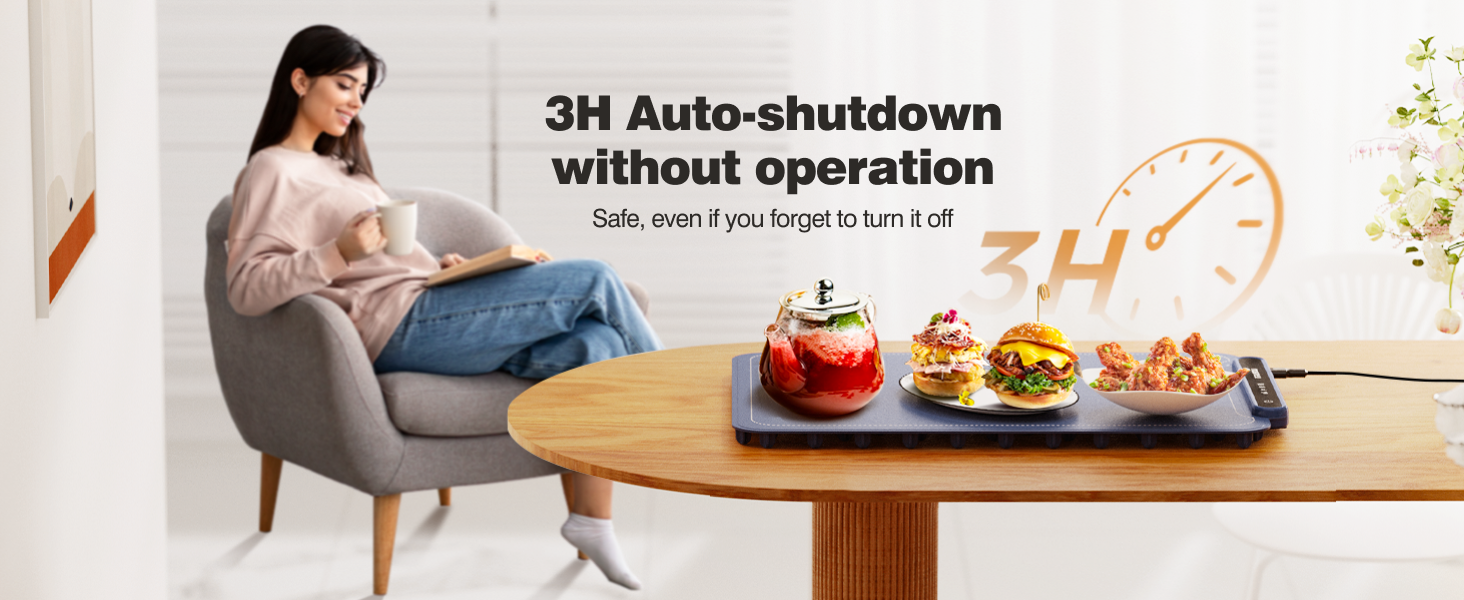 - 【𝐈𝐧𝐭𝐞𝐥𝐥𝐢𝐠𝐞𝐧𝐭 𝐃𝐞𝐬𝐢𝐠𝐧】: Besides keeping your dishes warm, Safety is our priority. This warming mat features an automatic shutdown function after 3 hours of inactivity, providing peace of mind and energy-saving convenience. Its user-friendly operation allows for hassle-free usage. Enjoy the benefits of this intelligent and multifunctional warming mat today