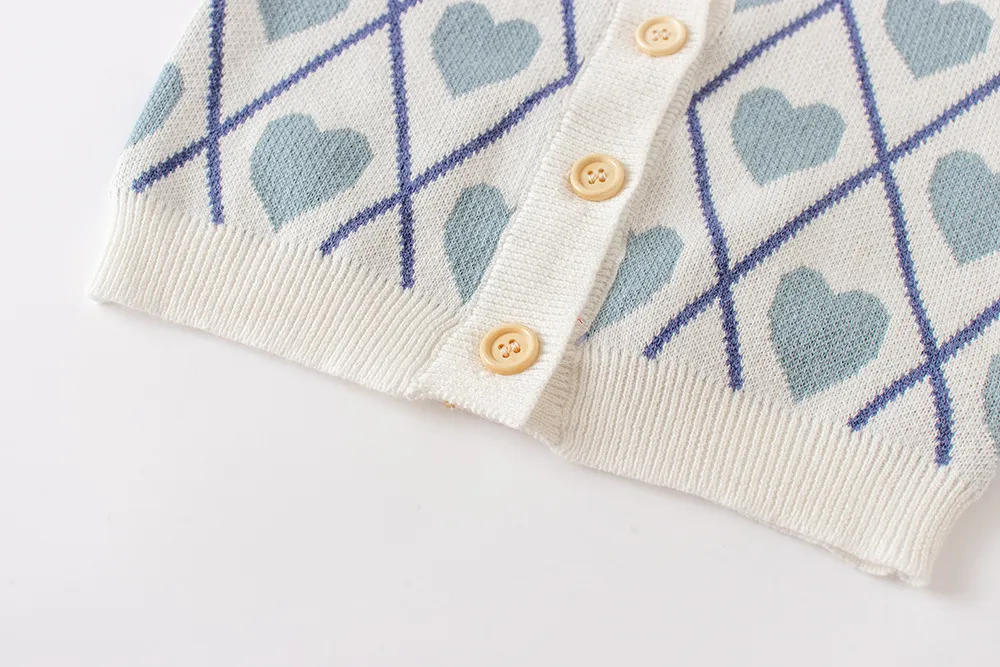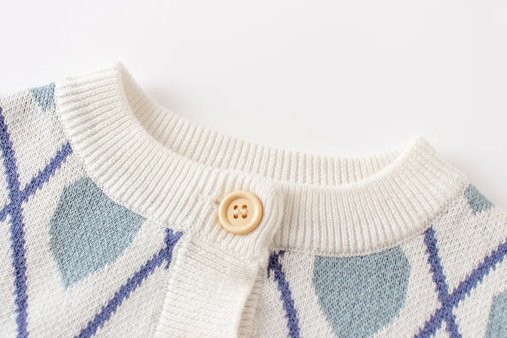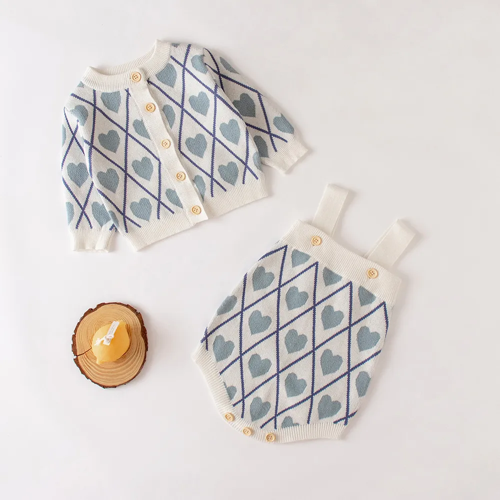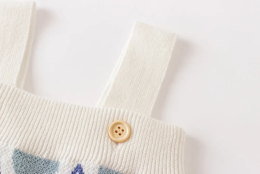 Jacquard Cotton Knitted Cardigan Strap Rompers Jumpsuit – Stylish Comfort for Your Little One