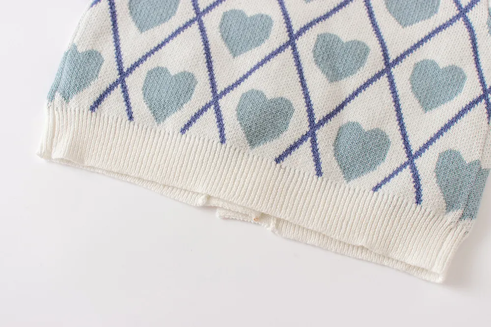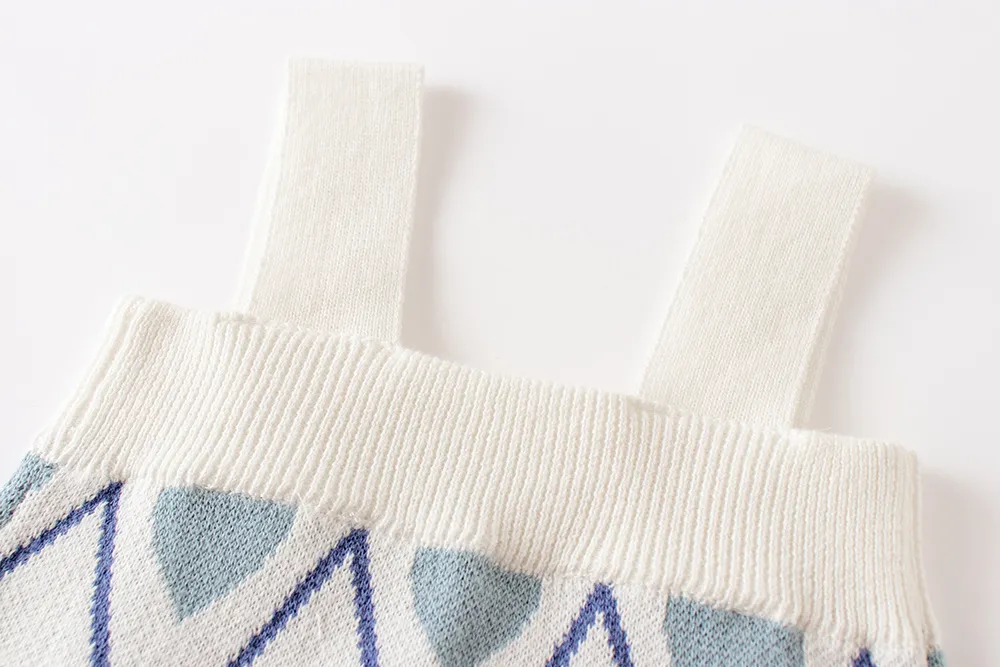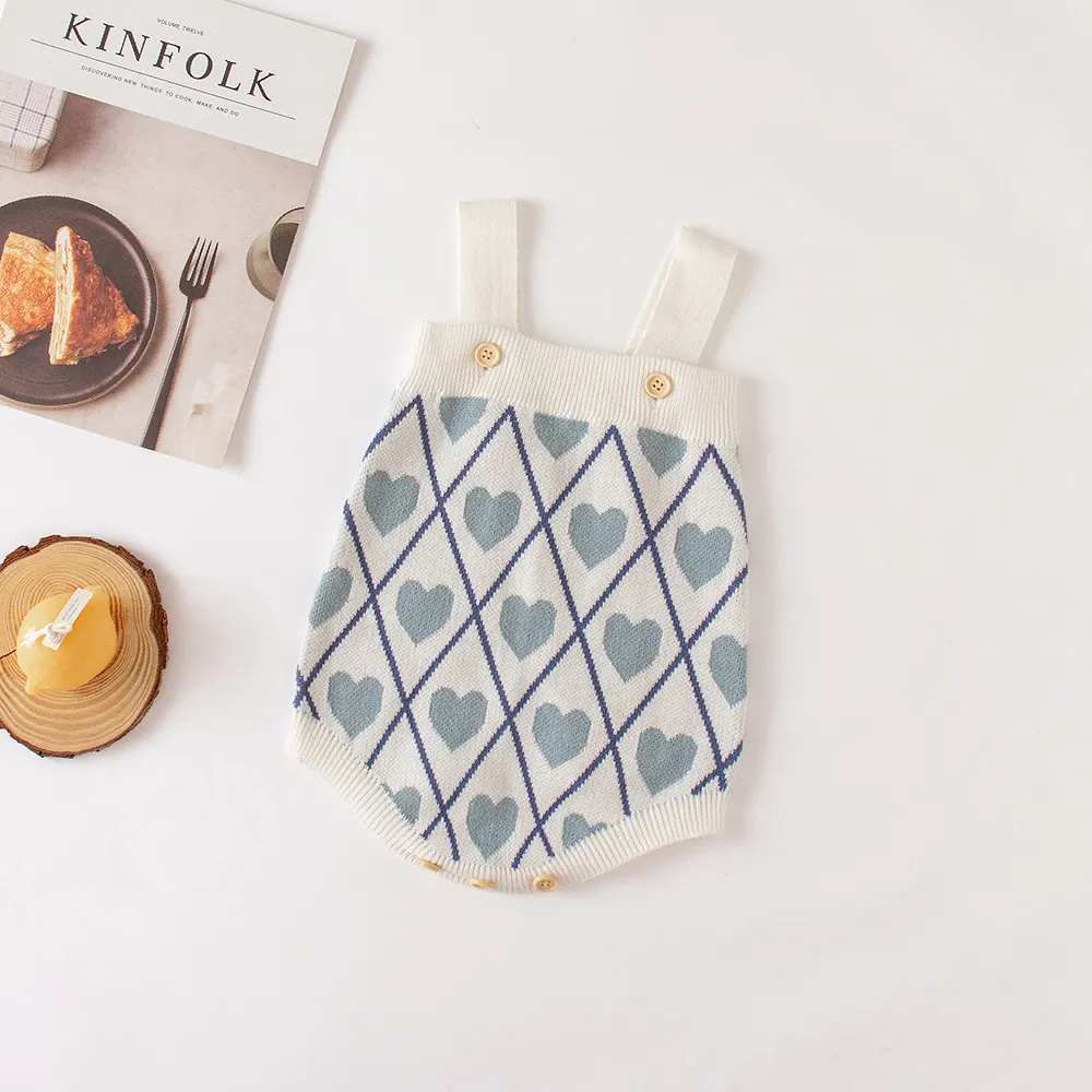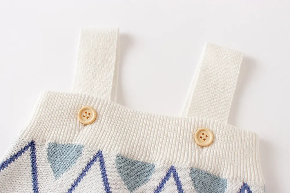 Jacquard Cotton Knitted Cardigan Strap Rompers Jumpsuit