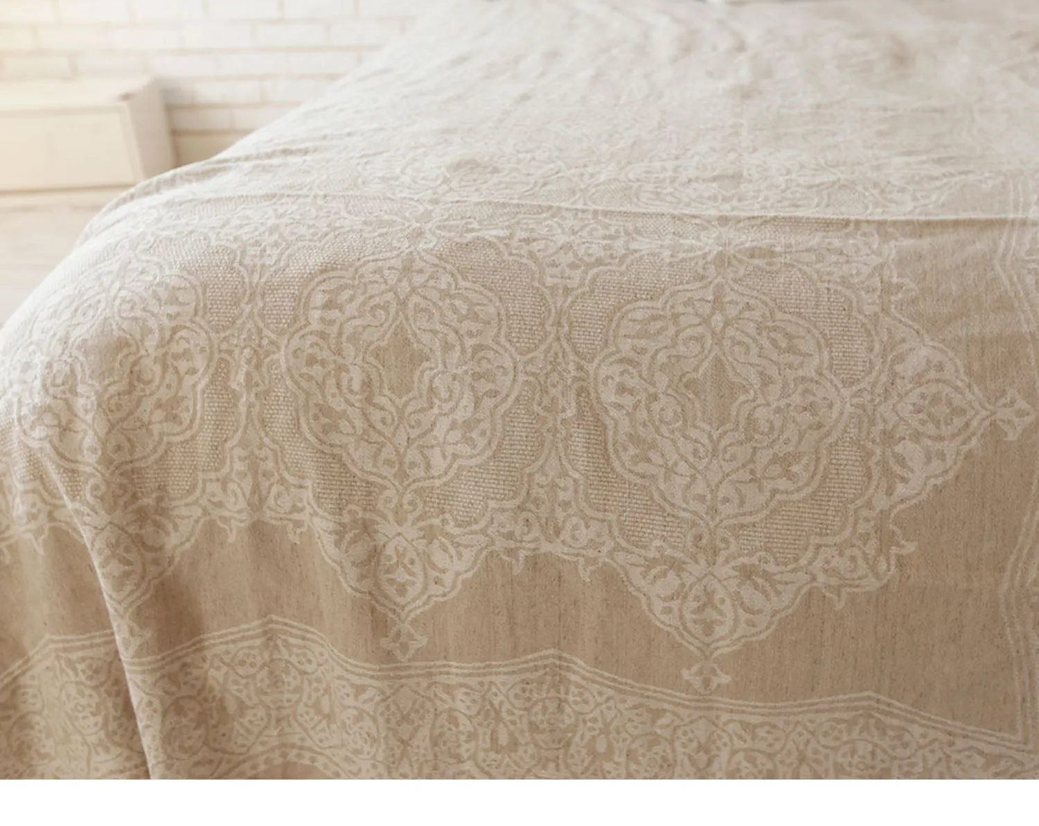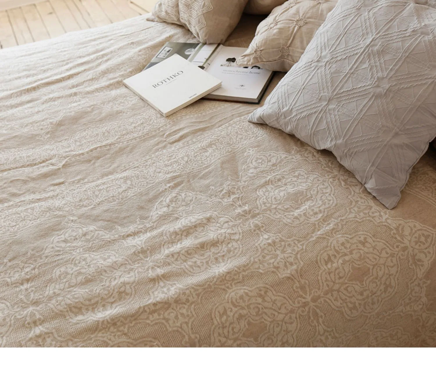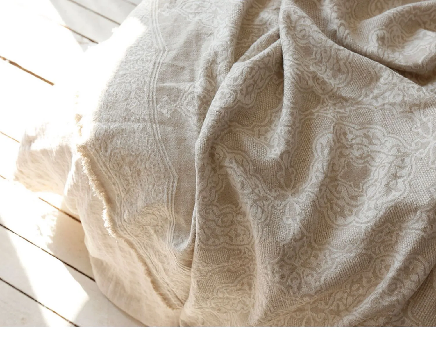 This blanket serves as a sofa cover, tablecloth, lightweight throw, or decorative accent, making it a versatile home decor piece.