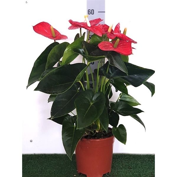 Brilliant Red Blooms: The Jambo Red Anthurium is renowned for its eye-catching, heart-shaped flowers in a vivid red hue.