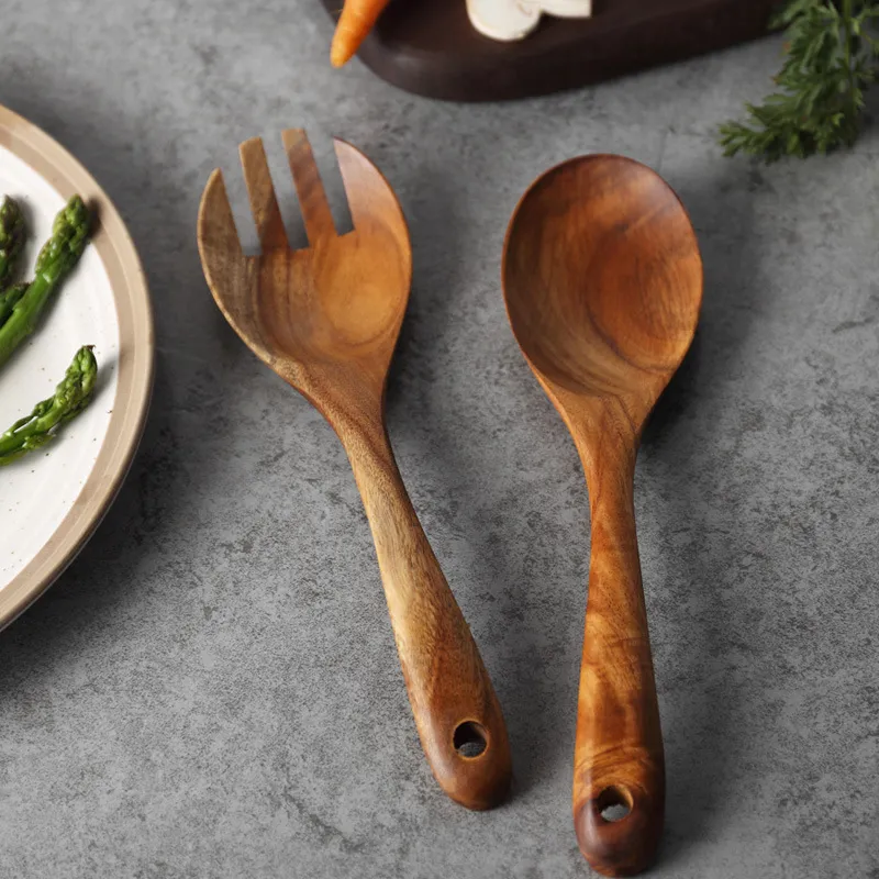 Japanese Acacia Wood Cooking Spoon And Fork Set
