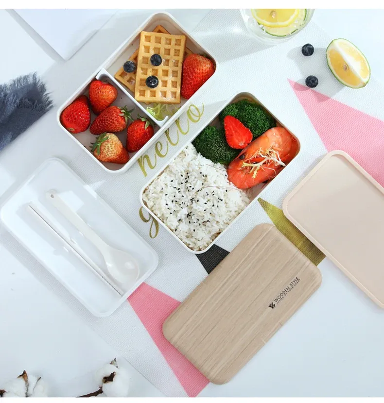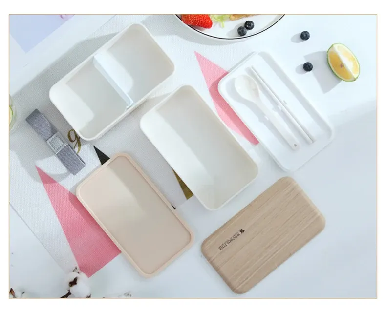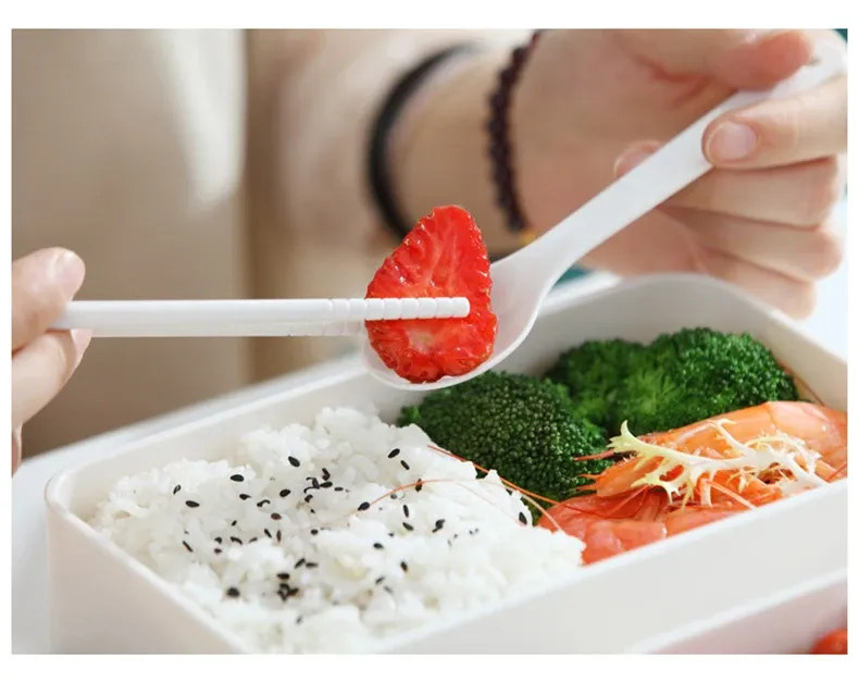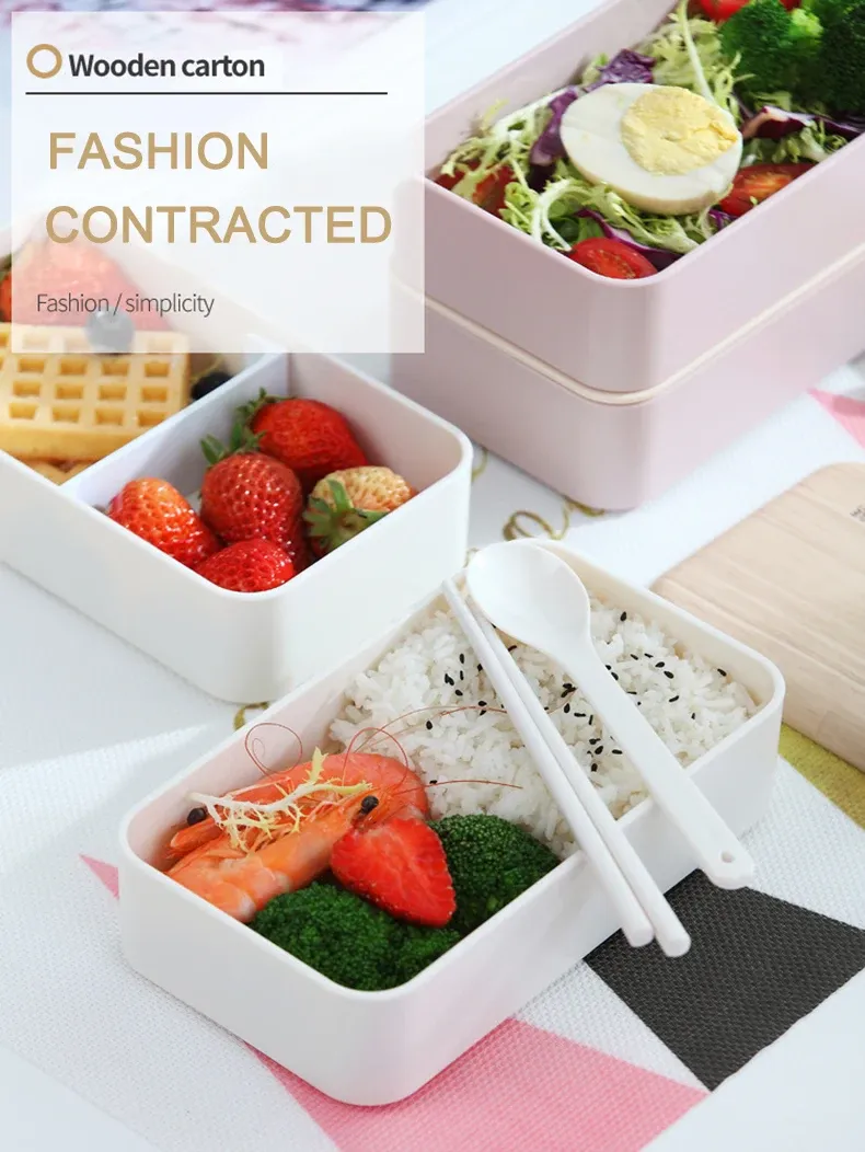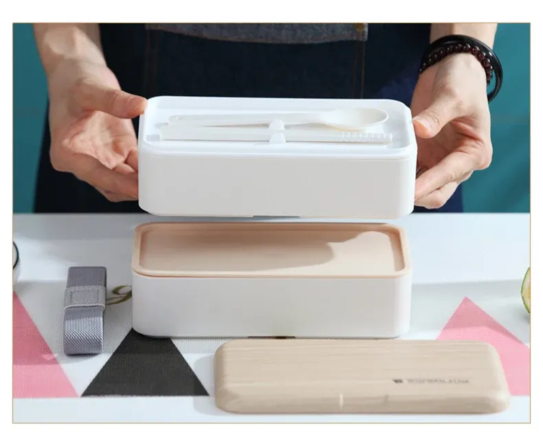7. Two-layer plastic student lunch box with fork spoon