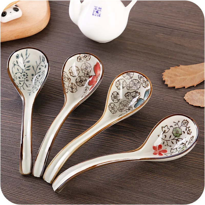 Japanese Hefeng Underglaze Color Hook Spoon Ceramic Long Handle Spoon Congee Soup Spoon Spoon Spoon Spoon Spoon Stirring Spoon Spoon Spoon