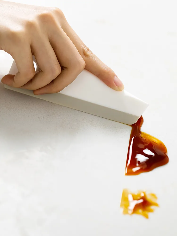 - Slide the wiper board between the gap you wish to clean, whether it’s between your kitchen appliances, bathroom fixtures, or in narrow corners.