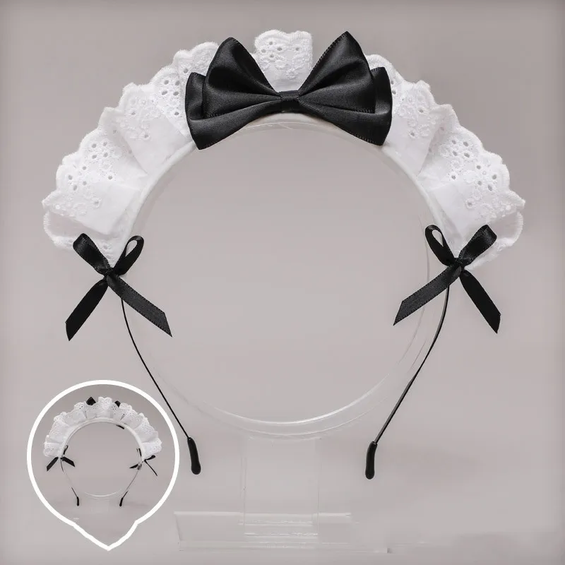 Japanese Lolita Headdress Lolita Hair Accessories Two-dimensional Lace Bow Maid Headband Anime Decor