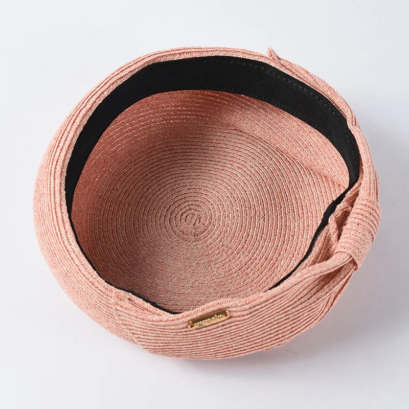 Japanese Straw Beret Summer Hat: Elegant Style with a Feminine Bow