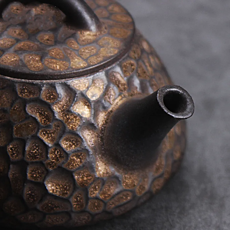 Japanese Style Black Gold Hammer Stone Ceramic Teapot: Elegance in Every Sip