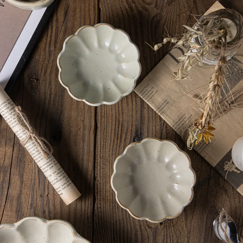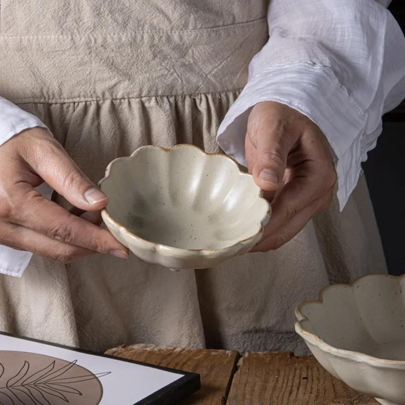 Japanese Style Coarse Pottery Tableware Flower Snack Bowl Sauce Dipping Small Bowl