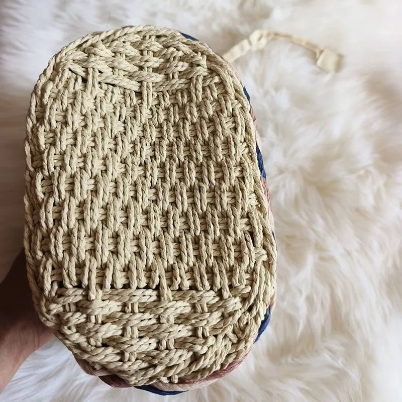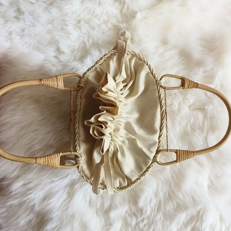 Japanese Style Paper String Woven Bamboo Rattan Handle Handbag