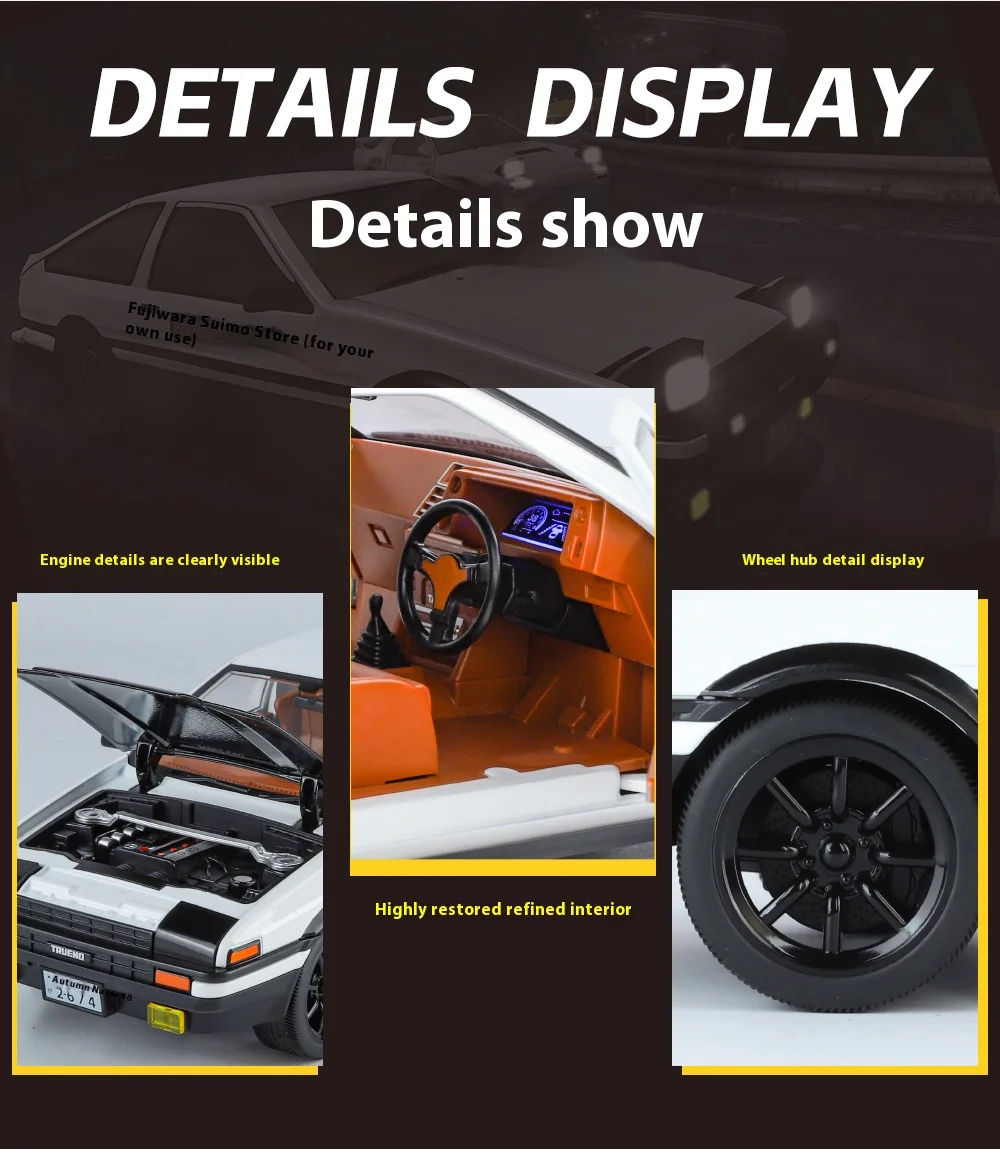 JDM 1:18 Toyota AE86 TRUENO Drift Racing Alloy Metal Diecast Model Car