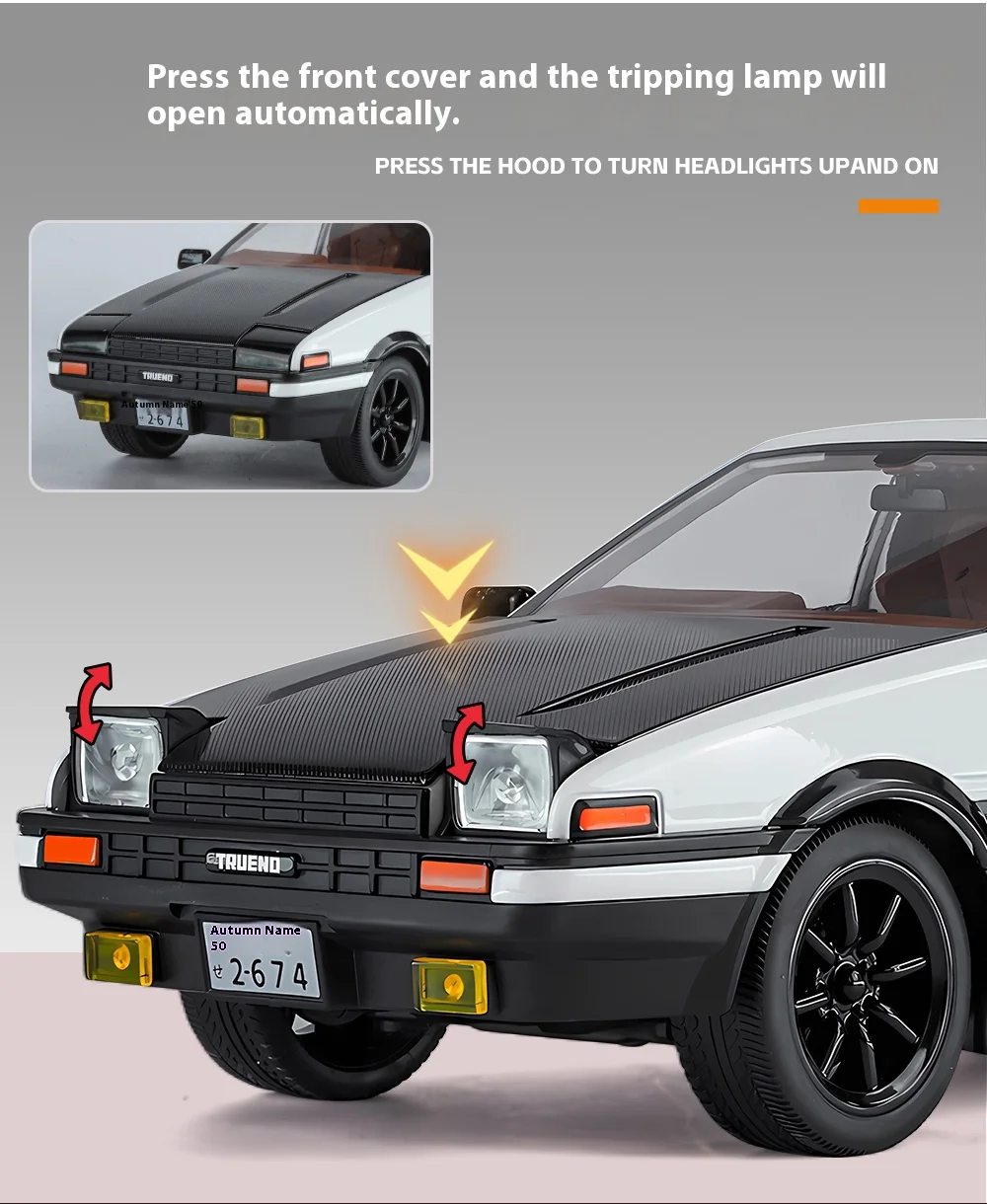 Designed to replicate the legendary Toyota AE86 TRUENO, which became famous for its drift racing prowess, this 1:18 scale model brings to life one of the most iconic cars in the automotive and anime world. Whether you’re a fan of Initial D or a die-hard drift racing enthusiast, this model will take you back to the thrilling moments of street racing and adrenaline-pumping action.