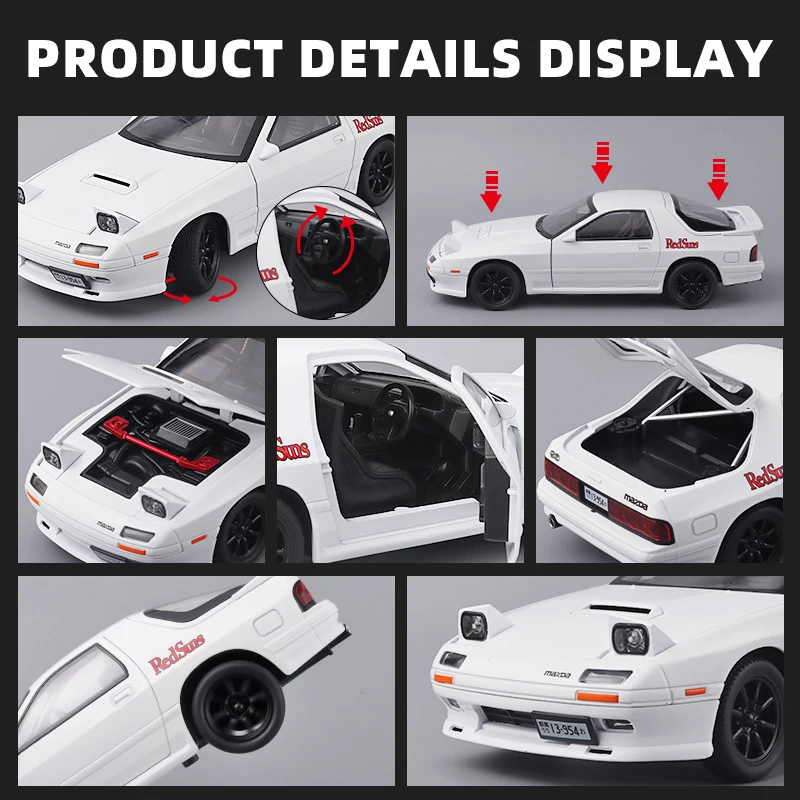 Key Features of the JDM 1:24 Mazda RX7 Initial D Diecast Alloy Model Car
