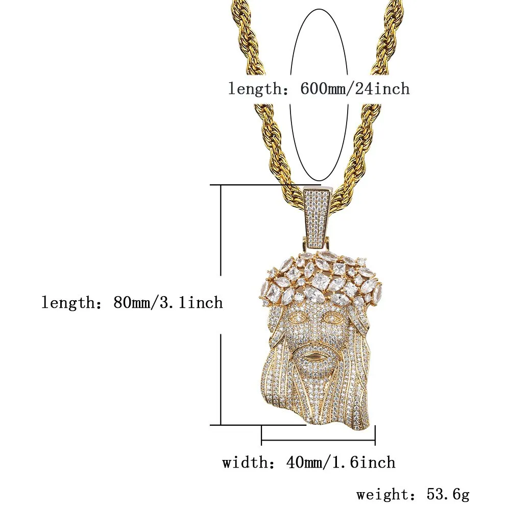 This necklace features a striking Jesus pendant, fully encrusted with zircons for a radiant and eye-catching effect. The pendant symbolizes faith, love, and devotion, making it not only a fashionable accessory but also a cherished spiritual item. Its intricate design and sparkling details make it a standout piece for any believer.