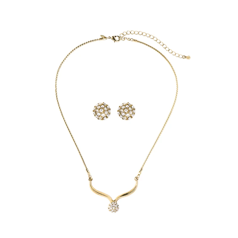 With its wing crystal pendant and round ball stud earrings, this set offers a perfect balance of elegance and modern style. It’s a timeless design that works well for both casual and formal occasions, making it an all-around versatile accessory.