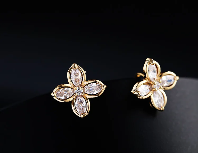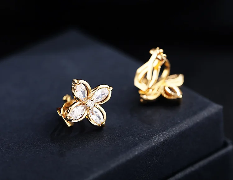 JIOFREE AAA Cubic Zirconia Flower Shape Clip-On Earrings No Piercing Needed