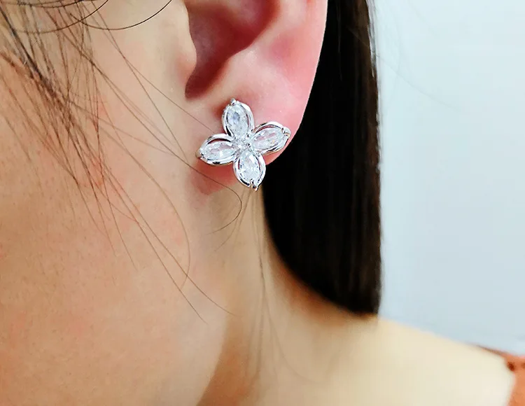 Experience sparkling elegance without the commitment of pierced ears with the JIOFREE AAA Cubic Zirconia Flower Shape Clip-On