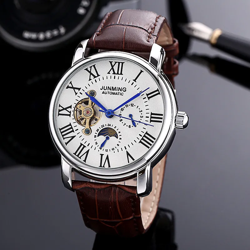 The JUNMING Roman Characters Men’s Automatic Mechanical Watch blends classic design with modern engineering, making it a perfect accessory