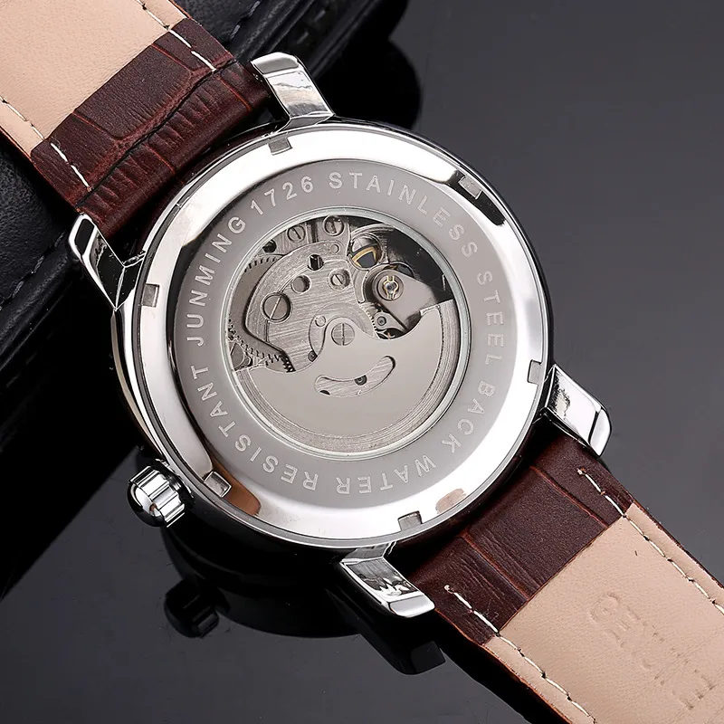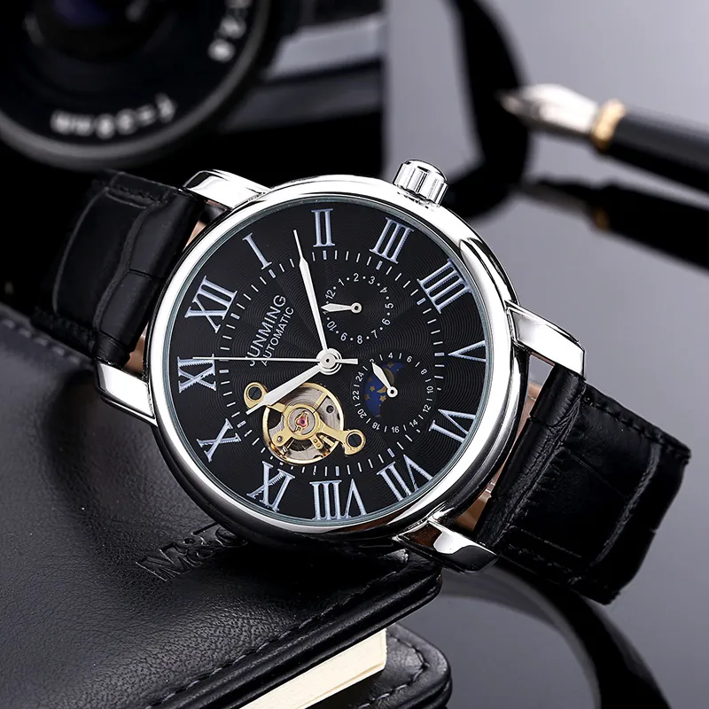 The JUNMING Roman Characters Men’s Automatic Mechanical Watch blends classic design with modern engineering, making it a perfect accessory