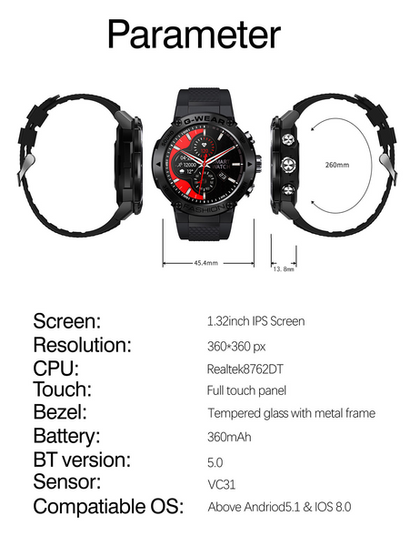 camera, sedentary reminder, games, etc. Supported Android 5.1 or above/iOS 8.0 or above/bluetooth 5.0. Easy to pair and operate. Smart watch